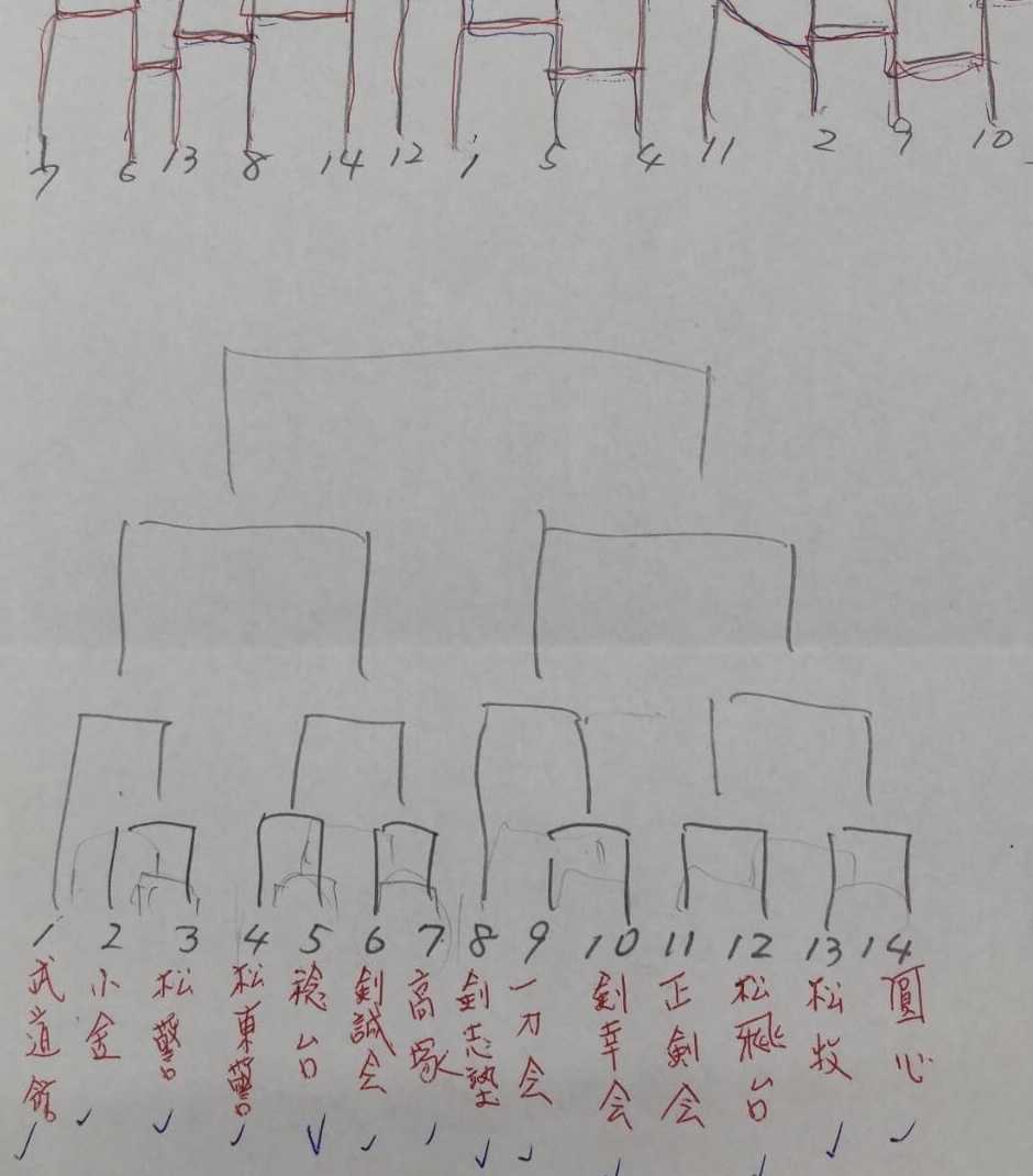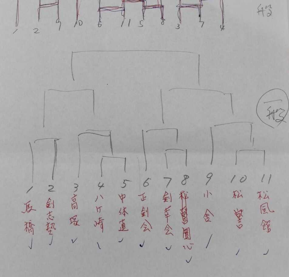 団体戦組合せは、上が小学生14チームで少し減りました。