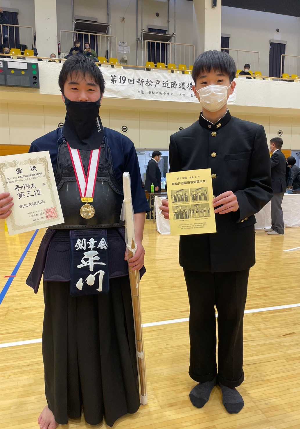 女子は習志野武道館勢が予想通りの活躍で杉本さんが同門の久我さんを破り優勝。男子は鬼高剣友会の酒井選手が栃木県蔵の街剣志会の勝選手の決勝を制しました。
