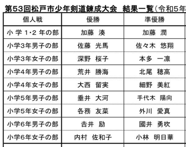 🌸6年生男子 吉井くん(剣幸会)は選考会免除