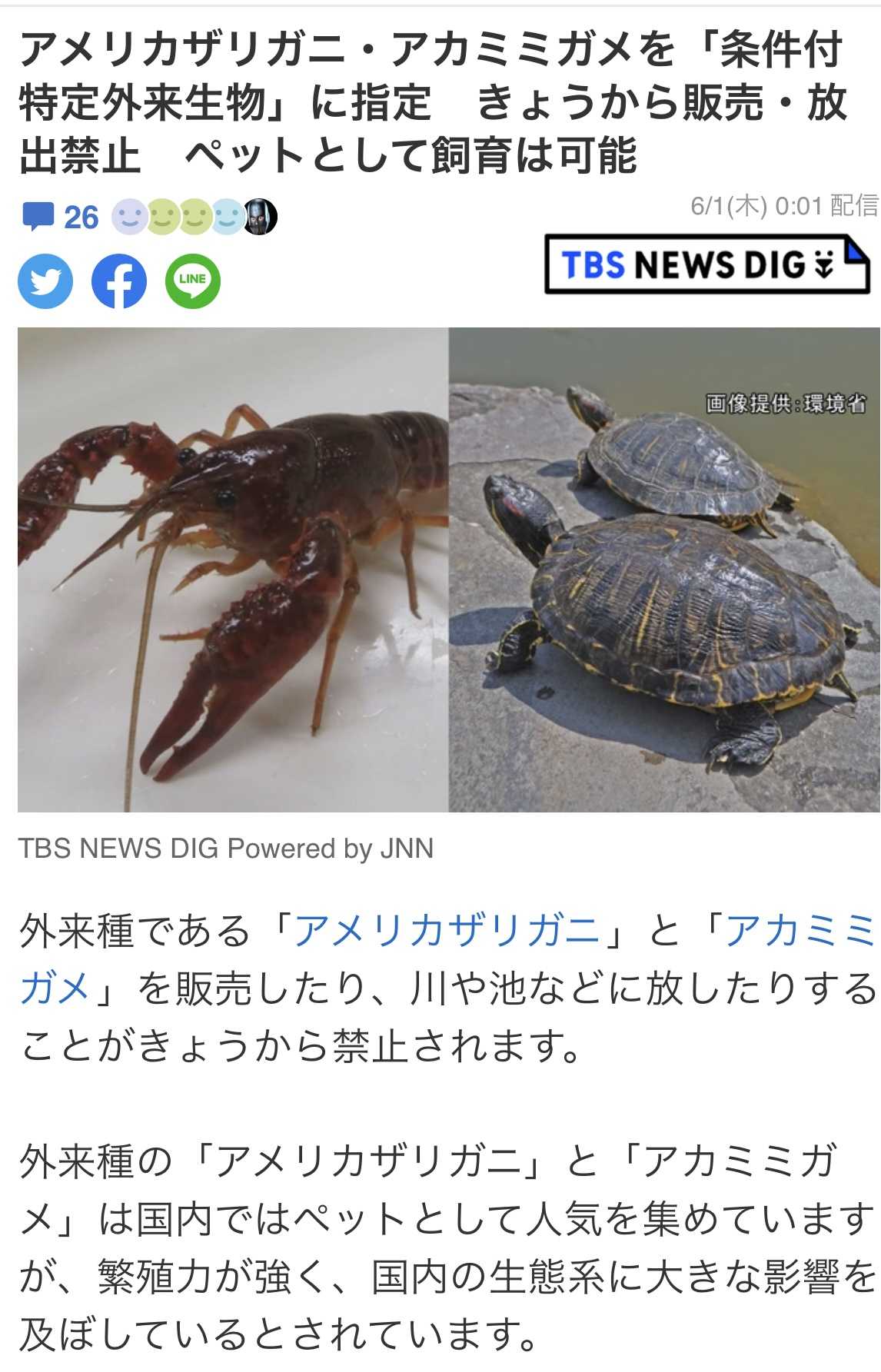 また、アメリカザリガニとミドリガメを捕まえて飼うのは自由だけど、放流は罰則となりました。また販売禁止となりました。