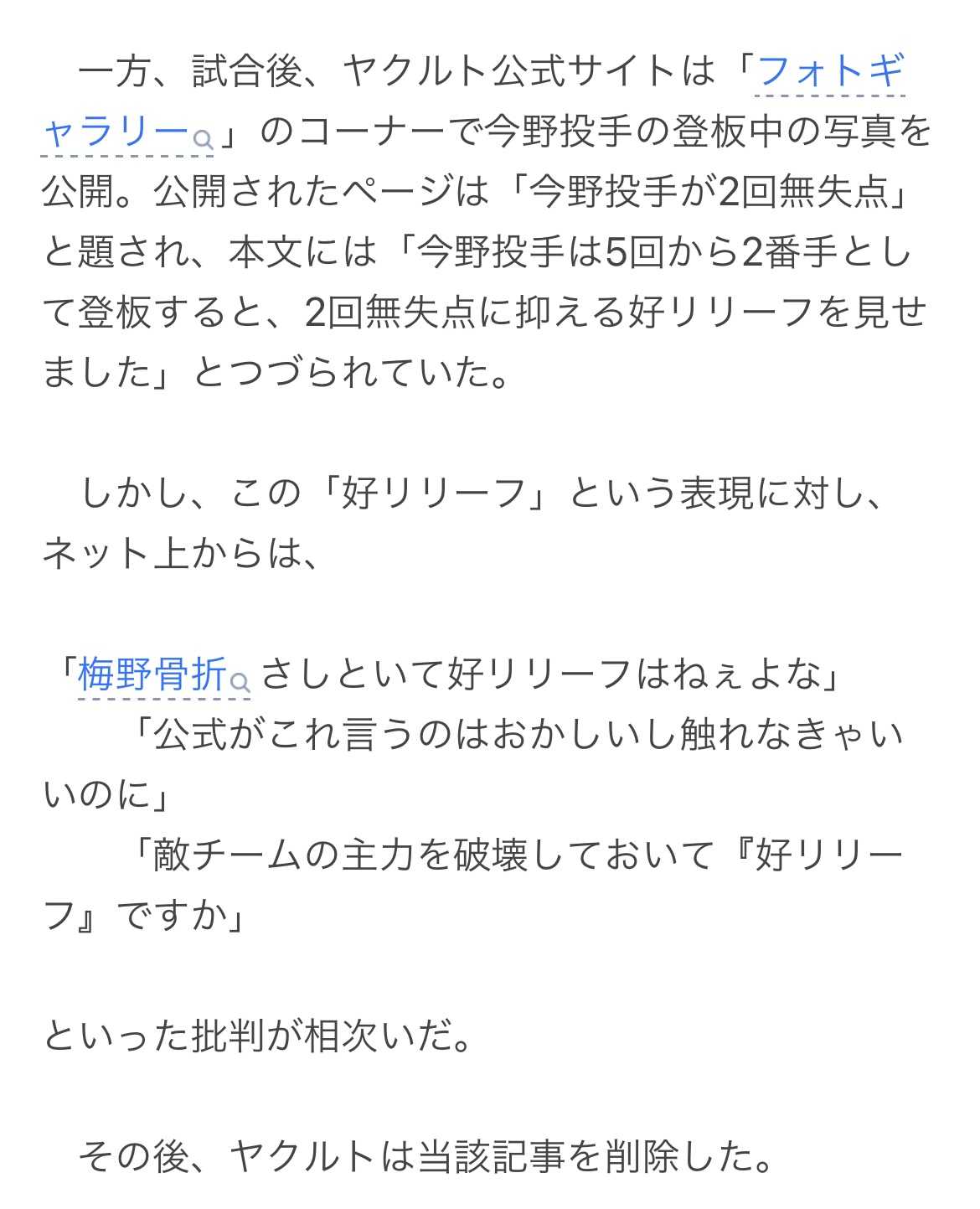 ヤクルトの広報が、過ちに気づいたらしい。↓