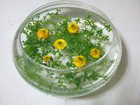 今日も暑い…。30度って…。ありえない(´・ω・`;A) アセアセ なんか涼しいコトないかなぁ…。う~ん。そうだ!今日は『水』で何か作ろう♪100均で買った丸いガラスの器を用意して…。実家からもらってきた黄色いお花と…。前から買っていたフローティング水草を用意して…。たっぷりの水に浮かべてみました(*^^*)うん!!いい感じb窓辺に置いたら風がふんわり。少し涼しくなったみたい(*´σー`)エヘヘ 楽天ブログランキング←ポチッと押してくださいWEDDINGに興味のある方はコチラをどうぞ***プカプカ浮き玉 Designed by Shion