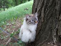 最近、シュウの夜鳴きがヒドイので気分転換にと思い、公園に散歩に行くことにしました。ドキドキ(゚∀゚*)(*゚∀゚)ドキドキ 初めての体験です。どうなるかなぁ??確かお兄ちゃんのケンも夜鳴きがひどいときに公園デビューしたのよね…。そしたらすごくビビッていて歩くのもままならなかったんだったなぁ。(;´Д`A ``` でも、その後夜鳴きがなくなったんだよなぁ…。さてシュウはどうなるのでしょう?お昼寝中の眠気眼のシュウを拉致同様、そそくさとキャリーの中に入れていざ!以外に車の中はいつも実家に行くときで慣れているのか、「にゃあ」と一言言ったきり静か。*:.。☆..。.(´∀`人)ホッ車で15分ほどの公園に到着。さぁ、首輪にリードを繋げてお外にGO!!初めての芝生です。最初はピッタっと私にくっ付いたまま動かず…。数分後、鼻をヒクヒク、周りをグルグル見渡し始め、私が歩くとチョコチョコと歩き始めました。ケンよりは好奇心が旺盛のようです。木の下がお気に入りのようでソヨソヨと吹く風に長い毛が吹かれて気持ちよさそう♪ただ、カサコソと人の歩く気配に気がつくと私のスカートの中にもぐり込んでちょっと震えているみたい。「大丈夫だよ~」と抱っこしてあげると『ゴロゴロ』う~ん可愛い(〃▽〃)ポッ 結局…。夜鳴きはというと、思惑通り直りました。よかったぁぁ。これでゆっくり夜寝ることが出来る゚.+:。(ノ^∇^)ノ゚.+:。 安眠の生活が戻ってきました。今頃お外で走り回る夢でもみているのかなぁ…。楽天ブログランキング←ポチッと押してくださいWEDDINGに興味のある方はコチラをどうぞ***カラフル首輪 Designed by Shion