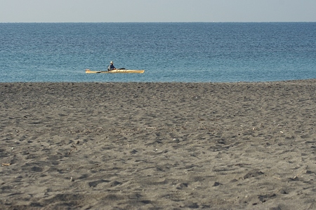 今日の横浜は雪です。ライブカメラによると、富士吉田もどっさり積もっていました。今日も三浦に行こうかと思ったものの、あちらは雨でも、こちらは雪なので帰りのことを考えやめておきました。さて、殺伐とした初声マリーナ跡を見た後は、ここで冬を感じたことの無い和田長浜へ。シーカヤックのメッカだとかで、この日も一艇。先ほどの黒崎の鼻が見えます。ものすごいオーバーハングです。やはり行ってみたいよなぁ。いつもは人影もまばらな平日の和田長浜。なぜか車も人も多い。おまけにバスまできています。それと犬連れの人が多く、何かミーティングでもあったのかな?バスの集団はここでお昼ご飯タイムらしく、それぞれ弁当を広げていました。三ッ峠じゃ雪が積もるという季節なのに、ここはもう春。日差しも暖かです。実際、イメージ的に暖かそうな湘南よいさらに南に位置していますから暖かいですよね。それと黒潮の影響ですね。同じ緯度でも東京湾側の観音崎あたりは、東京湾の水温が低いので、やはり春っぽさは少なく感じます。にほんブログ村ブログランキング参加中です。上のボタンをポチッとクリックお願いします!