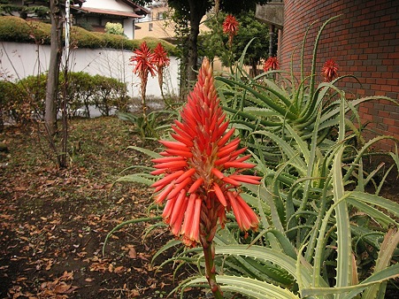スイセンの清楚な感じとは違い、華やかな冬の花がアロエです。元々がアフリカ原産の植物だそうで、日本での分布も南のほうに偏っていて、特に太平洋沿岸部に多いそうです。まぁ、栽培されているものがほとんどではありますが。この時期三浦方面でも赤い花をよく目にします。アロエでも、この赤い花の大柄の種類はキダチアロエというものだそうです。名前は良く聞くアロエベラは全く異なる外観だとか。アロエは分類体系により異なるのですが、アロエ科、ユリ科、ツルボラン科の属するそうです。ユリ科として花を見ると、確かにユリの花っぽくも見えなくも無いですね。家の近所ではこれだけ溢れ返るように見られるキダチアロエですが、稀少動植物を保護するための「ワシントン条約」で輸出入が制限されているそうです。もっとも身近なワシントン条約・・・という存在でしょうか。にほんブログ村ブログランキング参加中です。上のボタンをポチッとクリックお願いします!