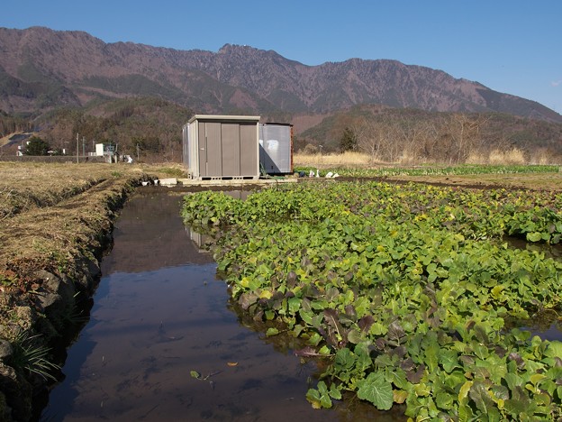 一通り買い物も済んだので小屋へ戻ります。寒いのもあってあまりウロウロしたくないんですよね。寒いの苦手です。西桂スマートICあたりを裏道で通るのですが、おや、水掛菜ですね。水掛菜の栽培は富士吉田では多くはないです。都留の方が面積では広く栽培しているかな。とはいえマイナーな作物ですからねぇ。こう見えて美味しいんですけどね。小屋に戻ってインスタントラーメンにサニーレタスと焼鳥塩味缶を入れたもので適当に済ませます。なんと言ったって、この季節、小屋においてあるポリタンクの水が凍ってしまうんですよね。飲用のものは断熱のシャグに入っているので無事なんですが、洗いに使う水がありません。なんだかキャンプ並の流しになっています。道の駅で汲んできた水だけでチャチャッと洗うしかありません。キッチン棟は暖房というとカーボンヒーターだけなので室温はめちゃくちゃ低いのです。空気を暖めるにはガソリン2バーナーを点火するか、炭火で暖を取るか・・・なんですよね。久しぶりに箱火鉢が活躍しています。鉄瓶が似合うのですが、ホーローポットしか無いのでこんな感じに。小屋にこもってイジイジしていても寒いので、庭の落葉掻きをしました。これでもやった後なのですが・・・。とりあえずフジの実の殻は取り除けたのでいいとします。暖かくなると三つ葉がごっそり生えてくるはず・・・・にほんブログ村ブログランキング参加中です。上のボタンをポチッとクリックお願いします!