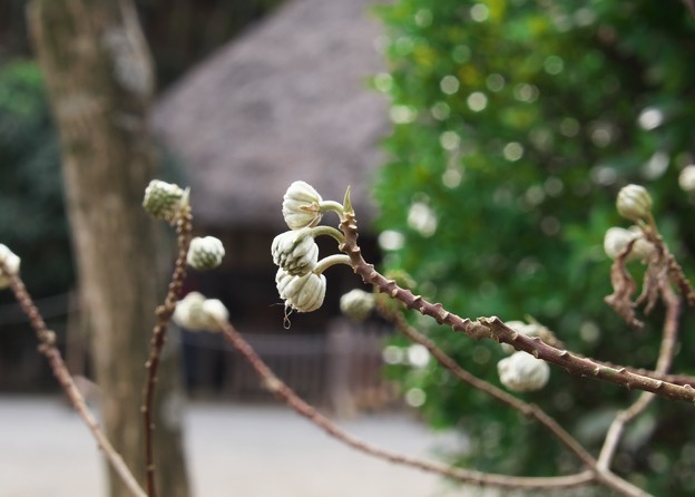 舞岡公園の「小谷戸の里」には古民家が移築され、季節の花が楽しめます。毎年、この季節には訪れる事が多いですね。葉のない沈丁花みたいですけど、これはミツマタの蕾です。沈丁花の仲間ですから似ていて当然です。古くに移入されたようです。黄色い花が咲きます。ベニバナマンサクです。在来のマンサクは黄色い花ですが、これは変種だそうです。こちらがマンサクです。「まず咲く」がマンサクの語源になったといいますね。マンサクとともに小谷戸の里の楽しみはフクジュソウです。キンポウゲ科の毒草です。スプリング・エフェミラルの一つで、花が終わるとしばらくして地上部は消滅してしまいます。本来野生の植物なのですが、自生しているものは見たこと無いなぁ。古民家とマンサク。絵になりますねぇ。にほんブログ村ブログランキング参加中です。上のボタンをポチッとクリックお願いします!