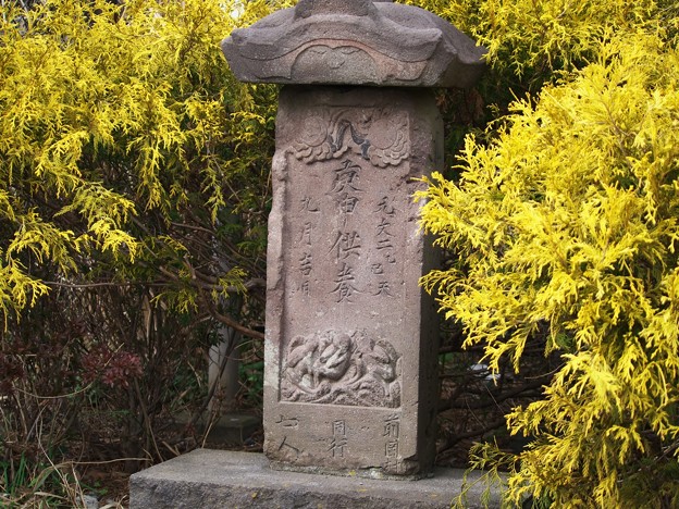 舞岡公園のはずれにある庚申塔。周辺は空き地のような場所にぽつんとあります。元々は別な場所にあったそうですが、横浜藤沢線道路の工事のために移動してきたとか。右には「これよりぐめうじミち」左には「これよりかまくらミち」となっており、江戸時代の道標であることがわかります。前岡村と刻まれていますが、舞岡は前岡だったそうですよ。庚申塔というと青面金剛と三猿がセットになっていることが多いのですが、これは三猿像のみですね。鎌倉道が通っていたため、このあたりには道標が点在します。さらに市街化調整区域ですからへんに移動されることも少ないのですが、これは移動組です。にほんブログ村ブログランキング参加中です。上のボタンをポチッとクリックお願いします!