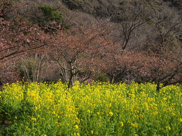 荒崎から帰る途中で気がついたのは・・・大楠山で河津桜が咲いているかも。で、ついでだしちょっと寄ってみることに。菜の花はいい感じで咲いています。ただ、河津桜はちょっと早かったような・・・・両方が満開ということはなかなかなくて、多少菜の花のほうが早いんですよね。河津桜の花もありますが、まだチラホラ程度でした。日差しが暖かだったですね。そろそろ良い頃だとは思いますよ。個体差があるので、結構花をつけたきもありました。丹沢は見えませんでしたが南東方向は見通しが利きますね。房総半島です。薄っすらと伊豆大島も見えます。春の空気は気まぐれですね。にほんブログ村ブログランキング参加中です。上のボタンをポチッとクリックお願いします!