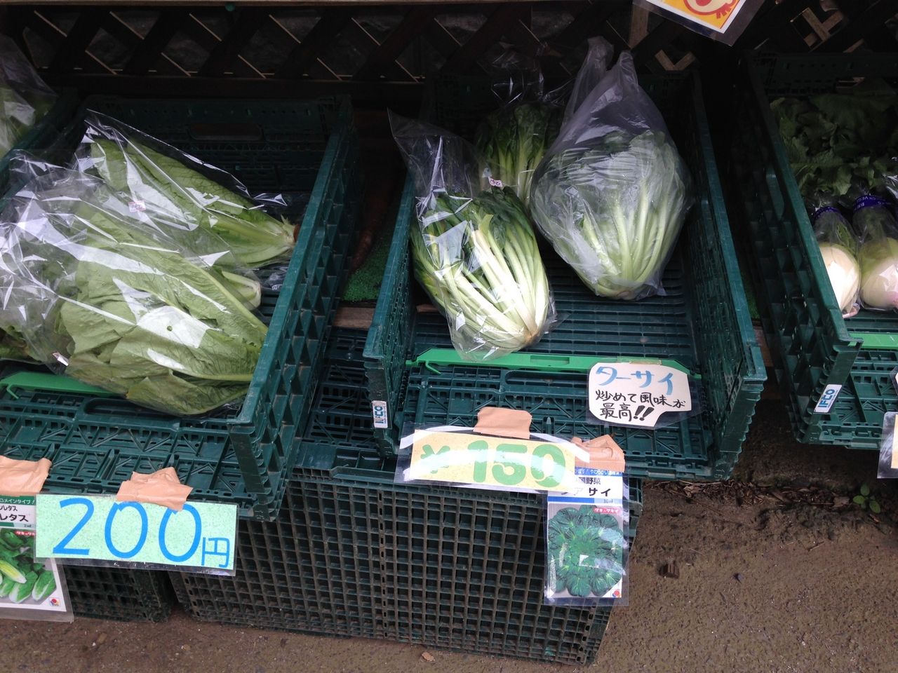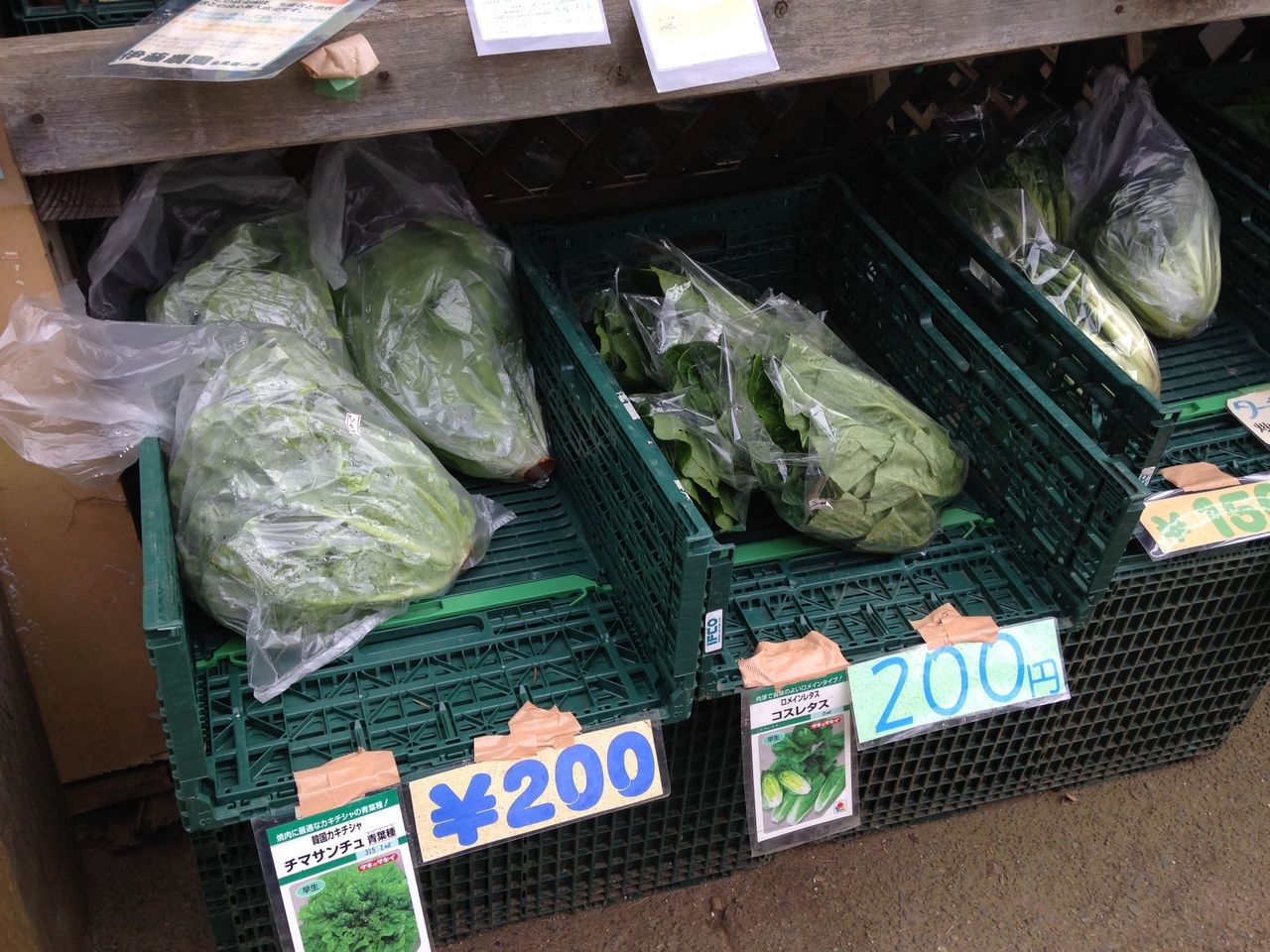 サンチュというとバラバラで売られていますが、こちらでは株ごと売っています。買う買わないは別にして、変わった野菜が多いので見るだけでも面白いですね。「鎌倉野菜」というのも同じように変わった野菜の生産が多いので人気があるのですが、三浦も当然ありますよね。ある意味こちらの方がマイナーだから買いやすいかも?