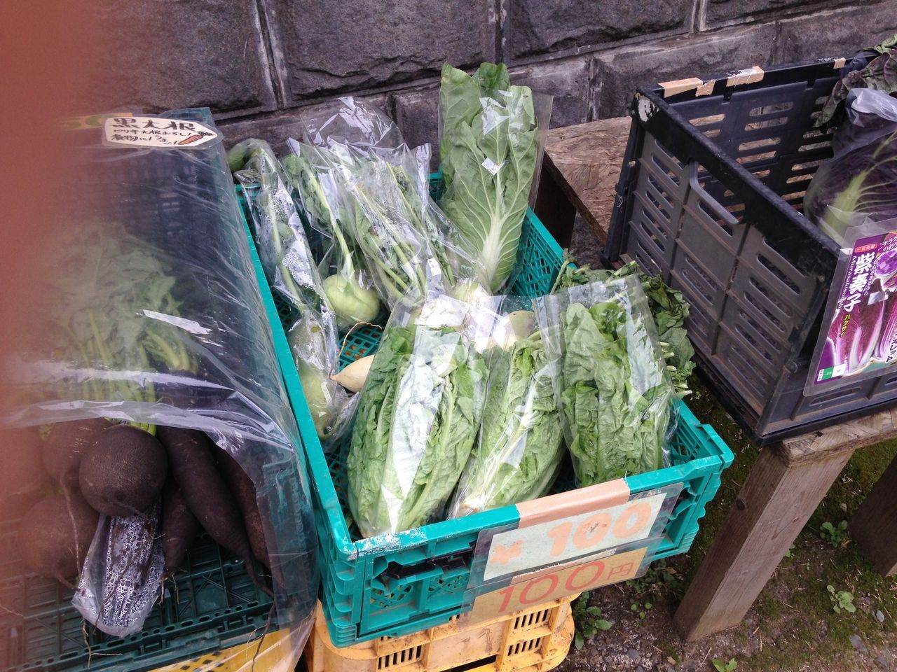これはお得コーナーなのかな?サニーレタスとコールラビが¥100です。左には黒大根がありますね。