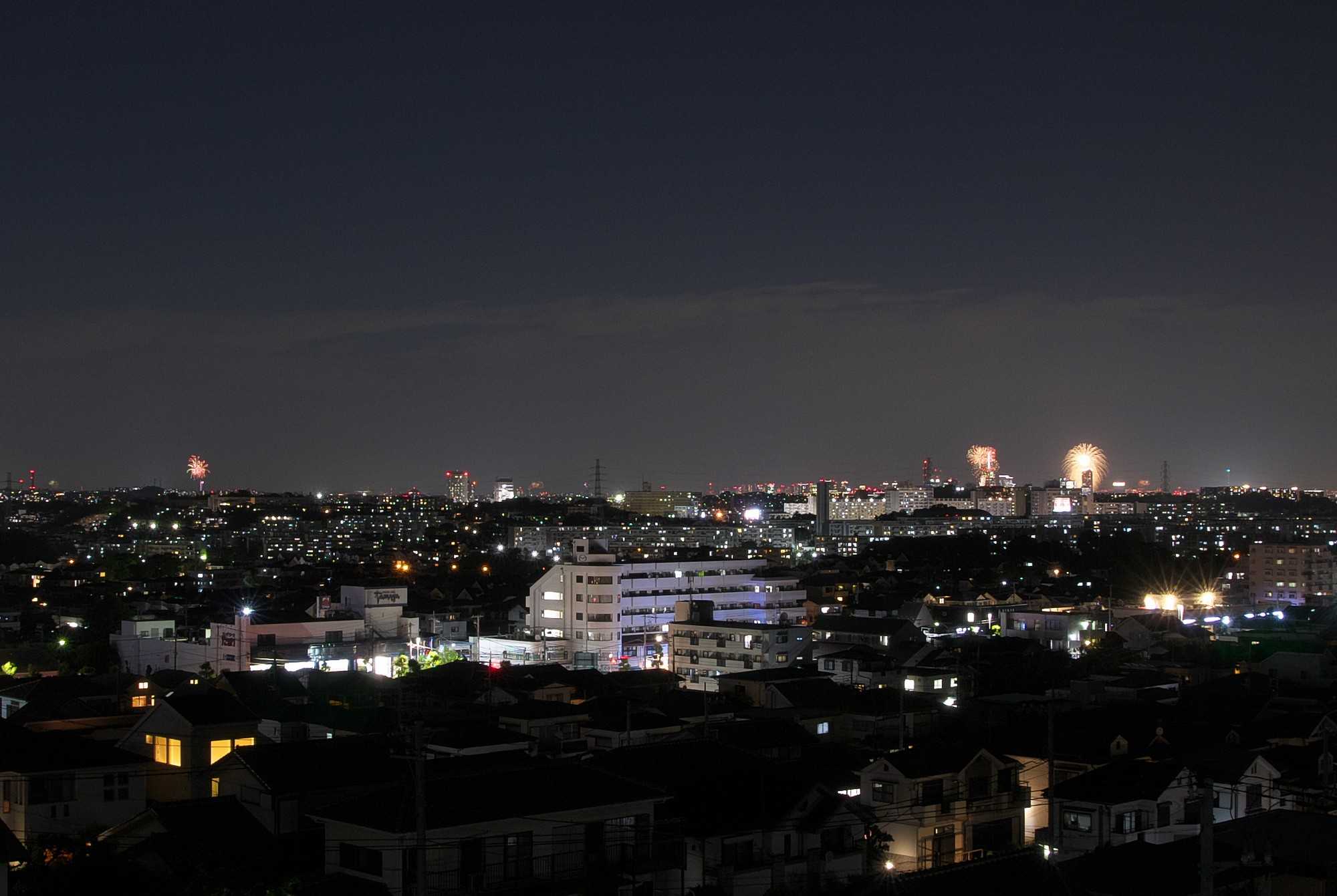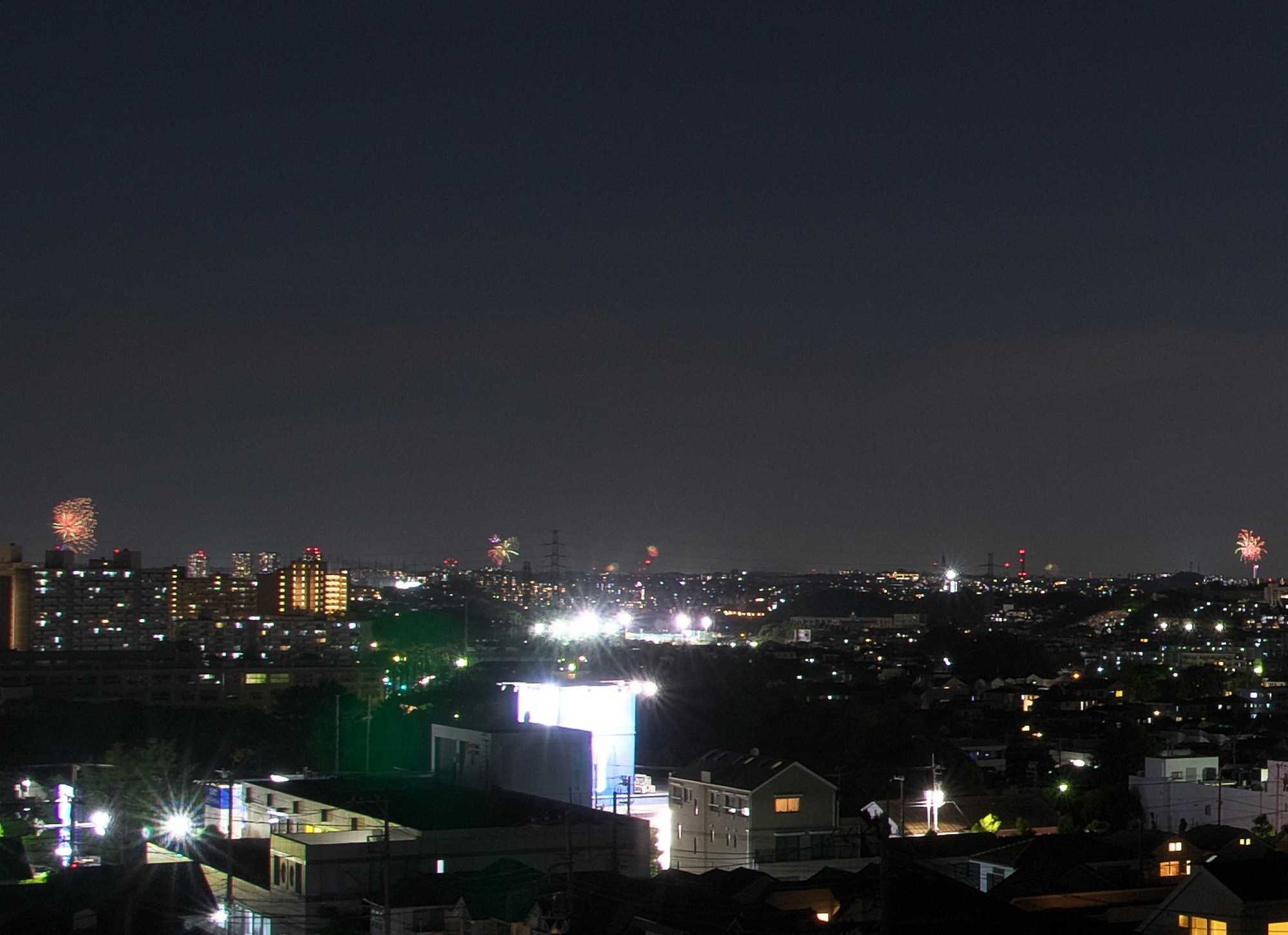 上の写真の左方向です。一番右のものは上の写真とダブります。かなり遠くのものも含め5か所ほど撮れています。もっと左でも打ちあがっていました。