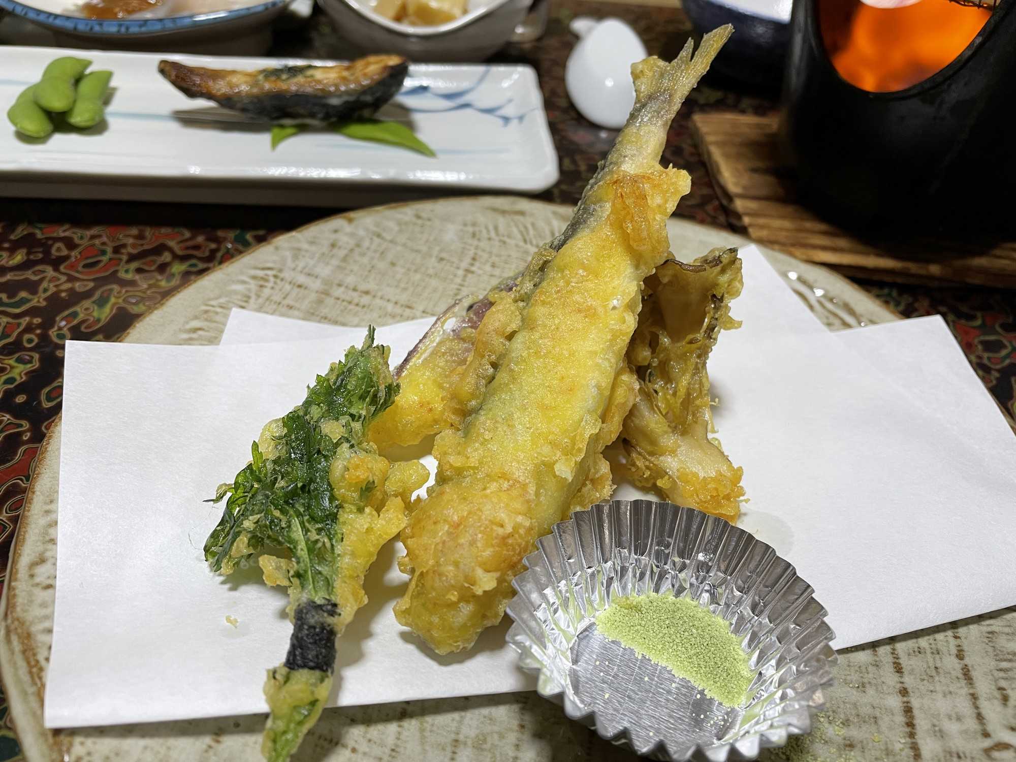 今回もアユが出ました。天ぷらになっています。多分天然ものだと思います。これも楽しみの一つです。