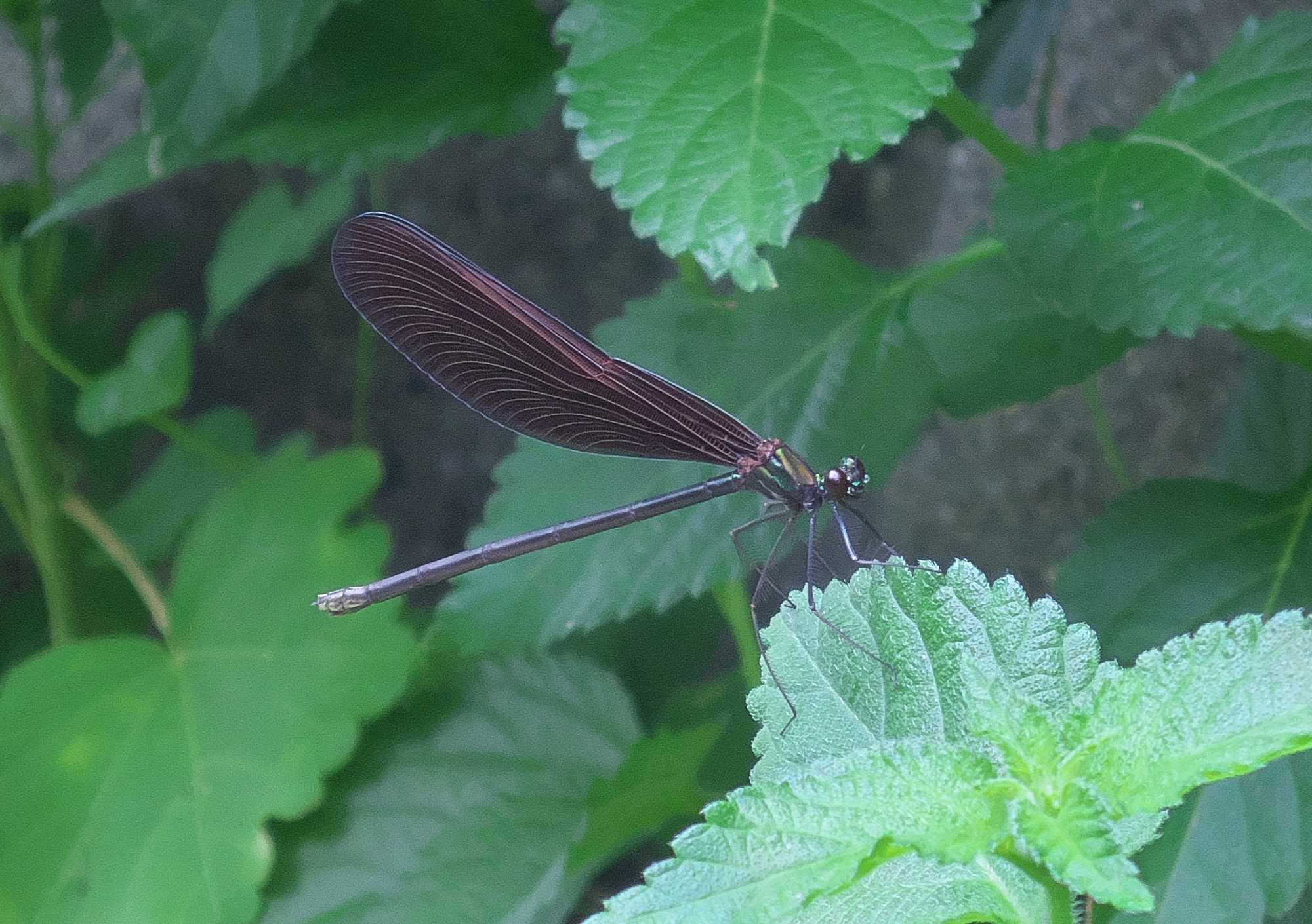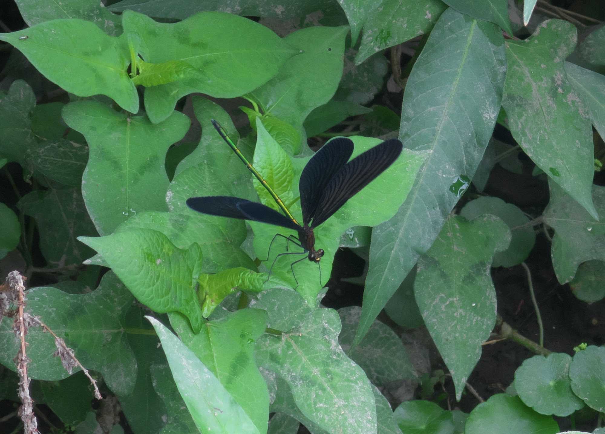 ハグロトンボです。これはメタリックグリーンに輝く雄ですね。