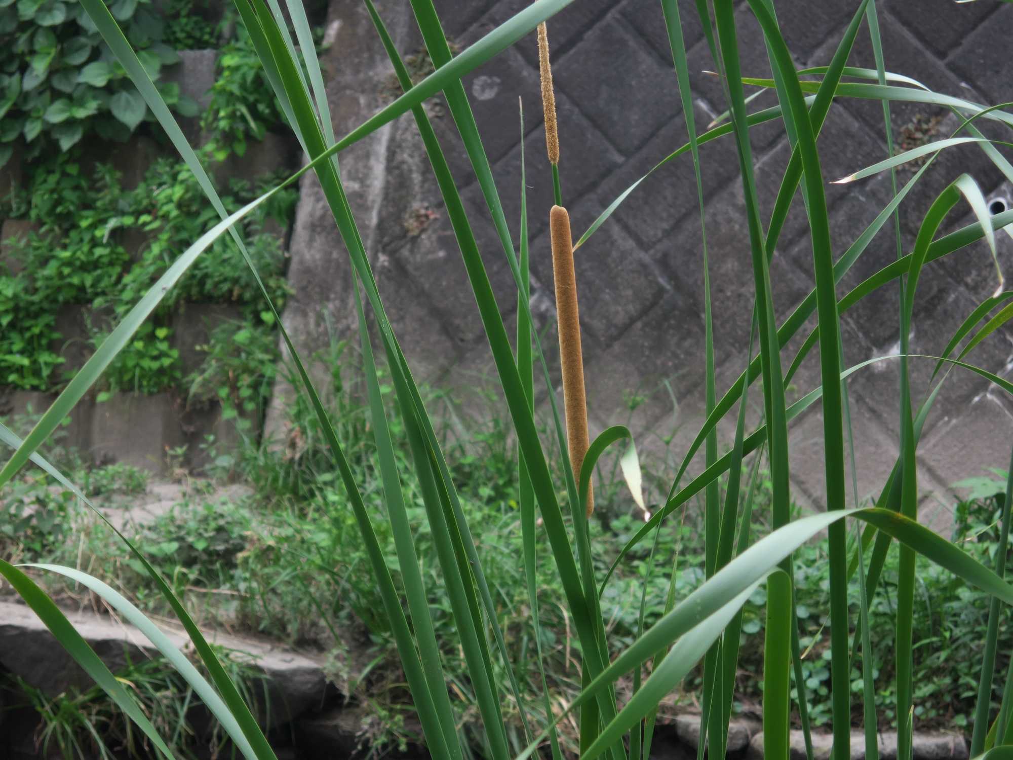 雄花と雌花の離れたヒメガマです。この川にしては珍しく在来種です。ここだけではなく、横浜市内の小河川でもヒメガマがよく見られるようになってきました。かつてのどぶ川から、下水道の整備により水が浄化されてきたからですね。
