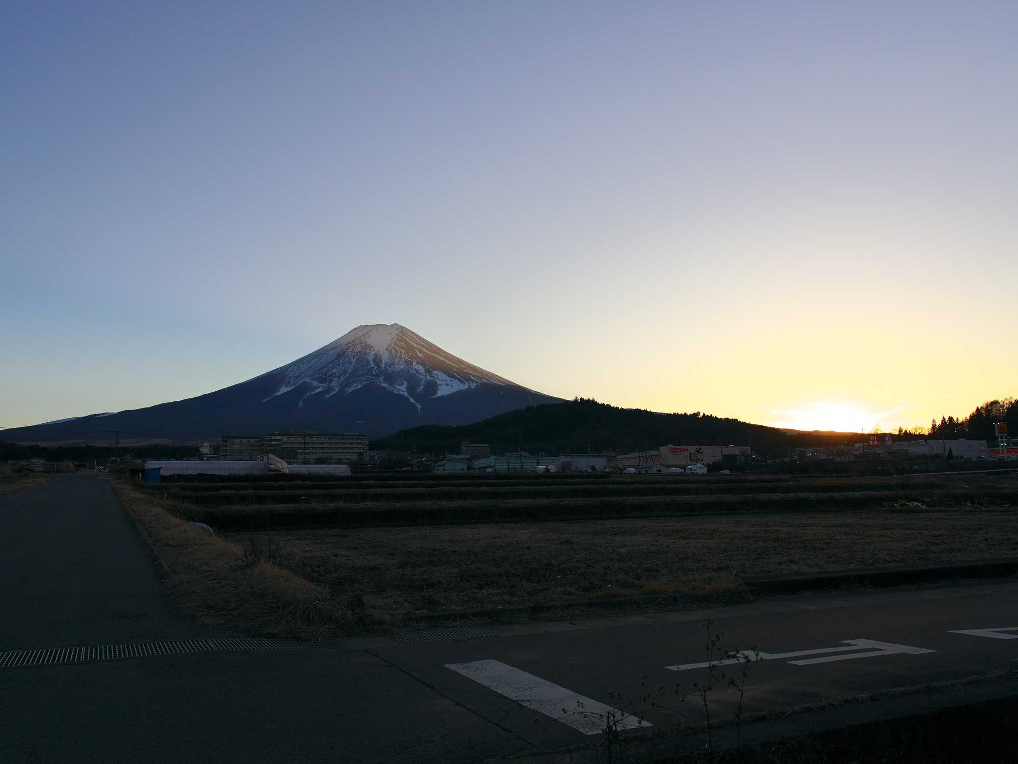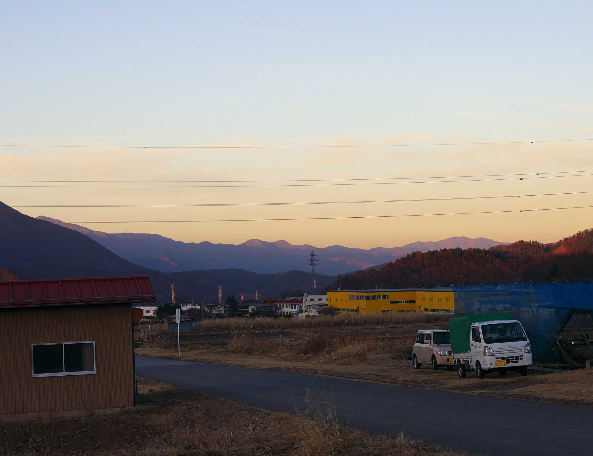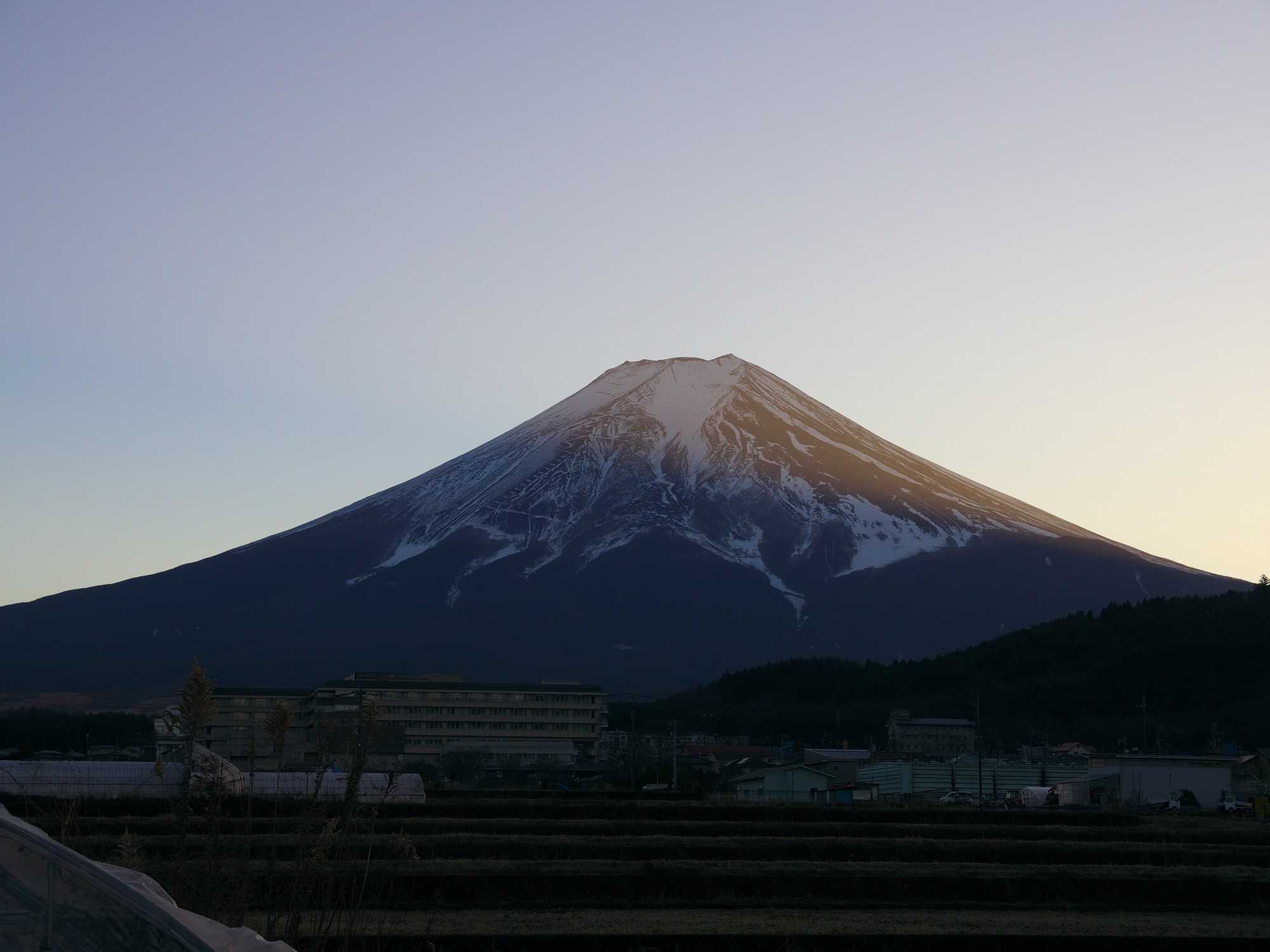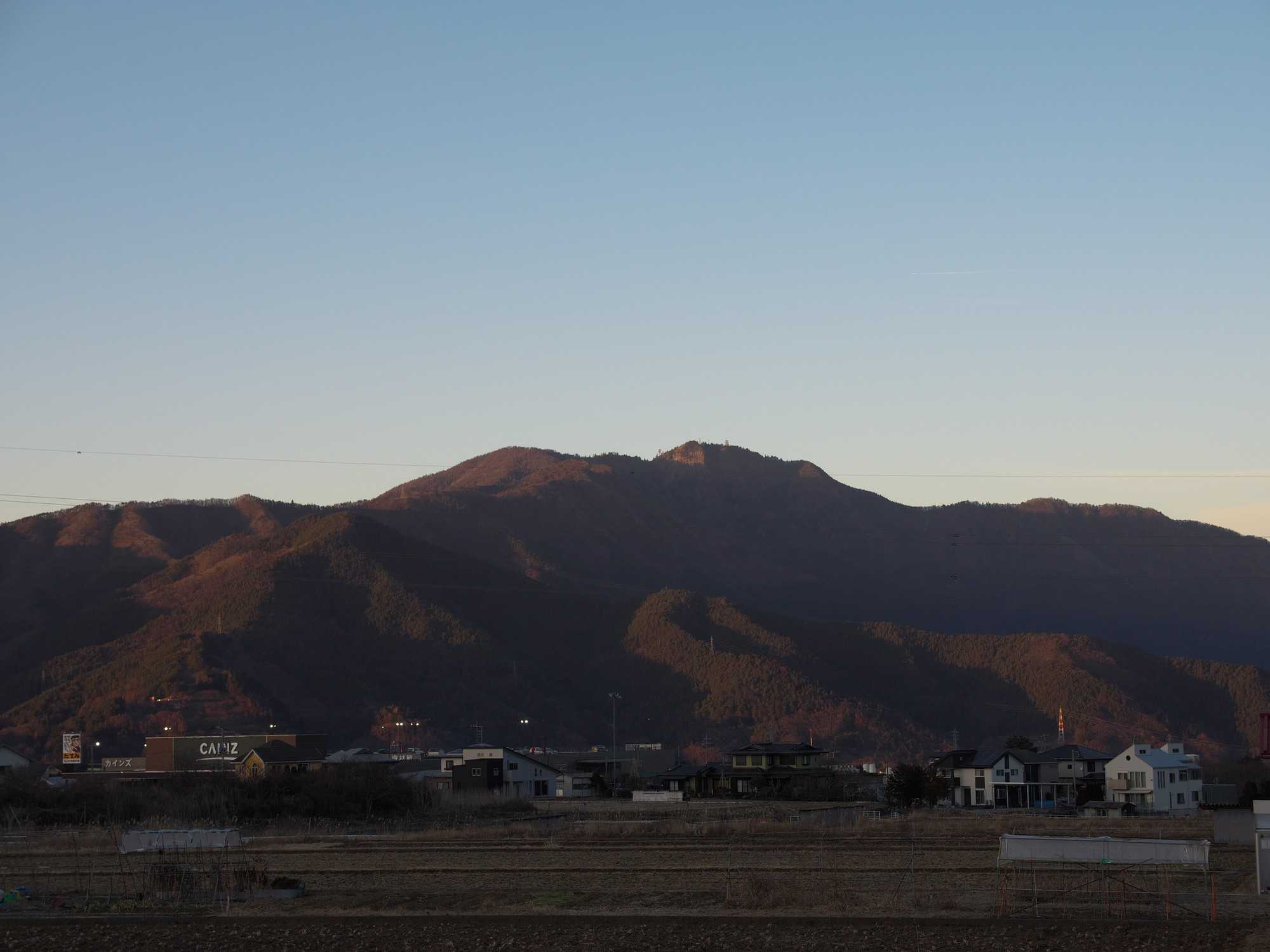 三ッ峠がほんのり赤くなってきました。空気が澄みすぎて夕焼けは起きませんね。