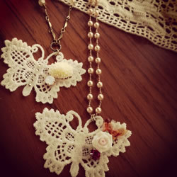 3/9(土)紫川リバーマーケットまで1週間を切りました!焦れば焦るほど全く関係ない事をやりたくなってしまう私。。。性格も猫っぽくなってきてるかな?ちょうちょのレースを樹脂で固めたペンダントチェーン部分を小丸ビーズで繋いだペンダントなど
