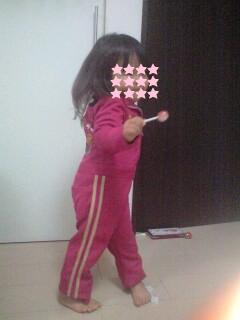 お返事していなくて申し訳ないです。土曜日に実家から帰ってきました。東名めっちゃ混んでた・・・・自宅に戻って来てから、咳がめちゃめちゃ出て、息吸う暇がないくらいになります・・・今日はだいぶ良くなったけど、昨日は苦しかったーー今日、娘はビッツを着ていたんだけど、なぜか脱いでずっと着てくれなかったオールインワンを手に持っていました!!サイズ4を着てます。裾を10センチ以上中に折り込んでいます・・しかしすごいお腹・・・・
