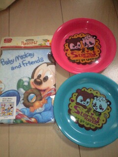 本日二回目の日記です。 携帯での更新ですみません。 楽友ちゃんのrenanchiちゃんから、カウプレのお礼にと、頂いちゃいました。 袋を開けて、最初にミッキーのタオルが☆ お兄ちゃんが青だから僕のだよね~とうれしそう。 そして、白い包みを開けると…!うわ~!って叫んじゃった! カフェのお皿だよぉ~(;_;)行けないからすっごい嬉しいよ~☆ 感動している後ろで、お兄ちゃんは、あっ!青はぼくのだよね!パンを食べる時に使おうーって言ってた~♪ 私はパウンドケーキでも焼いてカフェ気分で味わっちゃおうかな~☆ 本当にうれしかったです。お礼のカウプレなのにすみませんでした。 大切にしますね~☆ そして、もう一つお届け物が! 楽友さんの留珠ちゃんとお友達から。 代行のお礼に…なんて、この代行、私あんまり動いてないよぉ…お礼だなんて悪いよぉ…代行はついでなのですよん☆ 剣とシュシュ♪ 剣は見つけた瞬間二人の手が伸びてきたよ! お兄ちゃんは緑で娘はクマの方。 この後、幼稚園のサマーフェスティバルと言う名の盆踊りがあって、娘はキティの甚平着て剣を振り回してたよ。 剣は作り方を私が聞いたからわざわざ送ってくれたんだよね。 じっくり見ちゃったよ☆来年のバザーには出せそう! あと三回はあるから頑張るわ~ シュシュも持ってない感じで良かったよ~☆ もぅ、本当にありがとう!! またランチしましょうね~☆ コストコでもいいしね♪ 代行もカウプレもお礼なんてなんにもいりません~☆感謝とついでなのでね♪ またね~☆