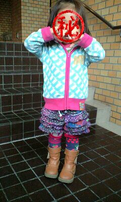 こんばんは。今日は幼稚園で10月生まれのお誕生日会でした。お誕生日月の子供達が先生に名前をよ呼ばれて壇上に上がり、名前と歳を言って、みんなで歌を歌い、先生達の劇を見てから、お教室で、名前の由来やどんな子だったかなど親がお話しなくてはならなくて・・・すっごい緊張しました・・名前の由来なんて、名前の音の感じで選んで後から漢字を画数みながらあわせた感じで・・・優しく輝くとか大きく羽ばたくとかそういうのがないんだよなぁ・・娘の名前なんて実家の隣に住んでたママちゃんの名前なの・・漢字は違うけど、カワイイ名前だなって思ってもらっちゃったでで・・最近寒くなってきて、娘のアウターが一つしかない・・・去年は沢山着れるのあったんだけど、80や90ばっかりで、90着せたらキツキツだったぁ・・・グラのJKはあんまり好みではなく・・・何買おうかなぁ・・・何かカワイイのあったら教えてくださいー★