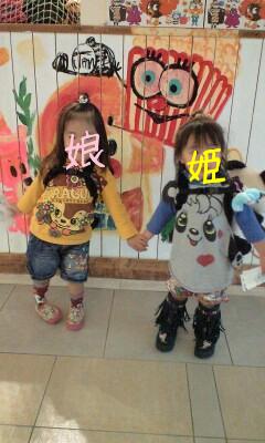 昨日から実家に来てます。 夏前からのやり残したことがたくさん…あるんです… 皆さんすみません… 最近、楽友さんの所にも遊びに行けてないので、リンク外してもらっても構いません。ごめんなさい… 写真の順番がおかしいけど、一枚目が本日の娘です。 キャロライン七分にフリルパンツです。 今日は元職場の同僚のお子達と遊んできたよ。 年長(お兄ちゃん)、年中(ひろくん)、もうすぐ3歳の娘とひなちゃん。 集まるとすっごいうるさい… 私怒り過ぎて疲れました(T_T) 2枚目が先日、グラママちゃんと回収に行った時の娘と姫ちゃん。 お店の外で撮ったのはブレブレでした… 娘は去年のグラのブーツ履いてたんだけど、サイズ大き過ぎて、筒丈が膝裏ギリギリ…来年用かも… なのでスリッポンに履き替えました。 お兄ちゃんのお誕生日月だったので、 BREEZEでお買い物したんだけど、 娘にピンクのフェイクムートンブーツを買おうとしたら拒否された… その後に会った姫ちゃんブーツだったから、 娘、[あっ!これ~さっきのだ!]って顔してたよ(-з-) 結局買えなかったから、今日見たんだけどサイズなかったぁ…(*_*) サンリオで可愛い千歳飴見つけたよ。 七五三の写真撮る時持っていこ~ お着物は楽友ちゃんのbuutaちゃんに譲ってもらっちゃいました☆ 娘もとっても喜んでいて、『わぁ~買ってくれてありがとう☆』って言ってたよ。『お祭り着る~』って言うの☆ 髪飾りだけつけてあげたら鏡見て可愛いって言ってたよ。 buutaちゃん、本当にありがとうございました☆