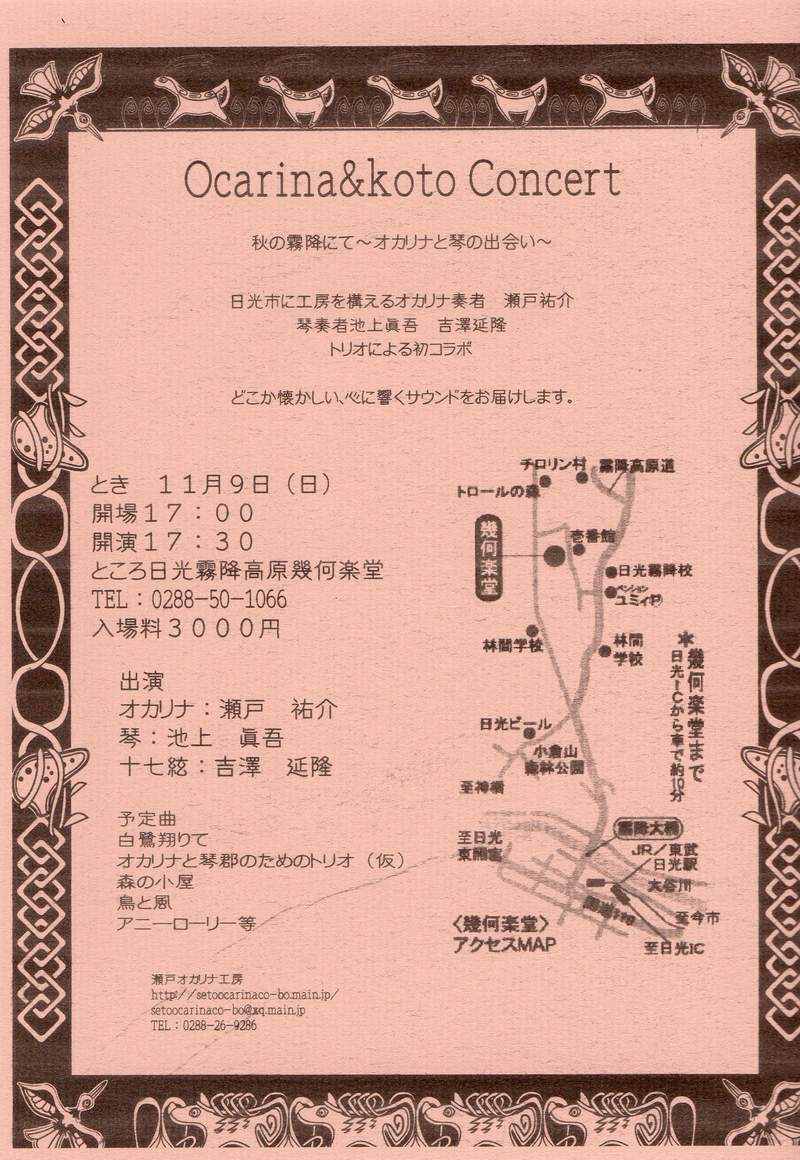 11月8日この日は2つの仕事をこなさなくてはいけない朝8時過ぎから 日光体育館で日光PTA親善バレーボール大会が執り行われた今年で30年目になる伝統の大会こちらも縁あって日光のとある小学校のママさん達にこの時期バレーボールを教えている なんと今年で6年目になる弱小チームが2年後には準優勝それからめきめきと実力をつけママさんバレーとは思えないほどの動き!クラブチームのようであるしかしこれだけの実力を持ちながら メンタルが・・・勝負の世界 争いごとを忘れてしまった私のせいかなかなか優勝ができない今年も準優勝で終わってしまった一度優勝を味あわせたく・・・問題は精神面緊張してしまい本来の自分が出せない本番に平常心でいるためには 呼吸が大切であるということは『座禅』こちらに参加していただき 心と身体のバランスがいかに大切であるかを発見して頂きたいこれが身についたなら某小学校の黄金期になること間違いなし!次の守矢瑞光尼僧による坐禅会は12月7日午後4時からご香料1000円幾何楽堂宴会料1000円今年最後の坐禅会 是非一度体験あれ一年のストレス この日に落とし皆さんですっきりしましょう!予約はメールにてnorimasa@io.ocn.ne.jpそしてこの日もうひとつの仕事はオカリナ 箏 十七弦コンサートこちらの音色に全ての疲れが吹き飛んだオカリナと和楽器がこんなに合うなんて想像をはるかに超えた音聴いてるものみんなが目を閉じ音に酔いしれ頭の中で情景を浮かべていたのではなかろうかやはり天才がかもし出す音は何かが違うこんな素晴らしいアーティストの演奏を聴けるなんて本当幾何楽堂は幸せです来てくださいましたお客様有難うございますそしてオカリナの瀬戸君箏の池上信吾さん十七弦の吉澤君お疲れ様でした