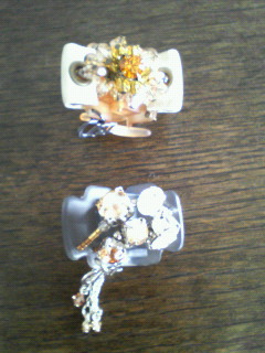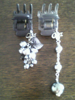 これ以上ヘアアクセはいらないと思いつつ…ずっと気になっていたビズクリップが売切れそうだったので思わずポチお取り置きを始めてしまいましたお取り置きを始めた時は欲しいものだらけでどんどん追加しちゃいそうって思いましたが、さすがにお値段がお値段なので結局2点だけで我慢出来ました。買ったのはコチラの2点 レディエモーションフリンジデザートクリップポチった後すぐに売り切れたけど、今また在庫が復活しています以前買ったブラック&グレーのスーパークリップに合うブラック系のデザクリが欲しいなぁと思って買いました。ストーンのグラデがキレイです大人しめの色なのでシックに使えそうですオーバーフロウデザートクリップ ベージュベージュは大好きな色だけど、大体金具がゴールドなので敬遠していました。これは金具は金古美?、プレートはねいるやさんで言う所のブラックパールのような色だったので使えそうと思って購入。思った通りのいい色でした合皮のものは初めてですが、普通のものと雰囲気が変わってかわいいです横にすると何となくリボンっぽく見えるかな?でもクリーム色なので汚れないように気をつけないと。ビズさんはお値段が高いけど、満足度も高いです ちょっと話は変わりますが。昨日のねいるやさんの天然石ゴムのページにあったマナーコームの使い方、(コームにゴムを絡ませる)いいですよねなるほど~って早速マネしてやってみました。ねいるやさんのシルエットマナーコーム+ヴィさんの天然石ゴム(名前忘れちゃった) 天然石ブレスでもやってみたけど壊れそうだったから断念して普通のゴムに。適当にゴムをぐるぐる巻きつけただけなのでキレイに出来ていませんが、こういう使い方もアリかなって思います。これだったら外せば元通りマナーコームとして、ゴムとして使えるからいいですね。こんな感じでコームとモチーフがバラ売りされて、自分で好きなように付け替え出来るようになったらいいのになぁ。ゴムじゃなくて何か簡単キレイに付け替えられるような。で、モチーフ部分だけ買えばいいって感じに出来ないかな?ねいるやさん、頑張って作ってください