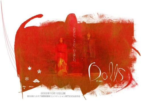 北野武監督の作品は暴力シーンがたくさん出てくるので避けていた。菅野美穂、西島秀俊が美しい四季を背景に歩いているシーンを予告で観た記憶がある。なんとなく悲しげで。二代目吉田玉男さん襲名を機会に文楽にも興味を持ったことから玉男さんと桐竹勘十郎さんが人形を遣ったこの作品を知り、どんなふうに映画に登場するのか、急に観たくなった。冒頭から、「冥途の飛脚」の忠兵衛と梅川の人形が登場。いつも思うけれど、文楽の人形ってどうしてこんなに意志のある美しさを湛えているのだろう。そうして、三つの物語へとつながっていきます。菅野美穂の豊かな表情と西島秀俊の感情を押し殺した表情の演技がこんな若いころから卓越していたんだ!と今更ながら。どれも美しいけれど、無情なこの作品は北野監督によると「これまで一番、最も暴力的な映画である」幸福になれる!と思った矢先に、どん底に突き落とされることこそが暴力よりも暴力的ということなのでしょう。文楽の人形は上手くシンクロしていたと思いました。つらすぎるから、何度も観たくなるような映画じゃないけれど、いつまでも心に残る映画です。出演:菅野美穂、西島秀俊、三橋達也、松原智恵子、深田恭子、大森南朋【送料無料】Dolls[ドールズ(原題:DOLLS 製作年:2002年 113分)西島秀俊、人生の転機は映画『Dolls』
