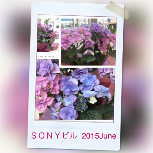 SONYビルの前で待ち合わせ。ガラス越しに見たことのない品種の紫陽花が。気になって中へ入ったら、路地に咲いていた紫陽花とは違ってちょっとセレブな紫陽花さん達。日本原産であるあじさいは、幕末にシーボルトによって西欧に伝えられたとされ、その後ハイドランジアとして世界で栽培されるようになりました。日本では梅雨の風物詩として親しまれていますが、1960年代アメリカでは一年中出荷・販売され、クリスマスのプレゼントとして使われていたようです。あじさい5品種を展示。ここでしか楽しめない、色とりどりのあじさいが集まっています。ソニービルで梅雨を鮮やかに彩るあじさいを是非ご覧ください!1F「スズキフロリスト」で展示のあじさいを販売中です。【展示期間】~6月30日(火)11:00~19:00 1Fエントランスホール(SONYビルのFacebookより)