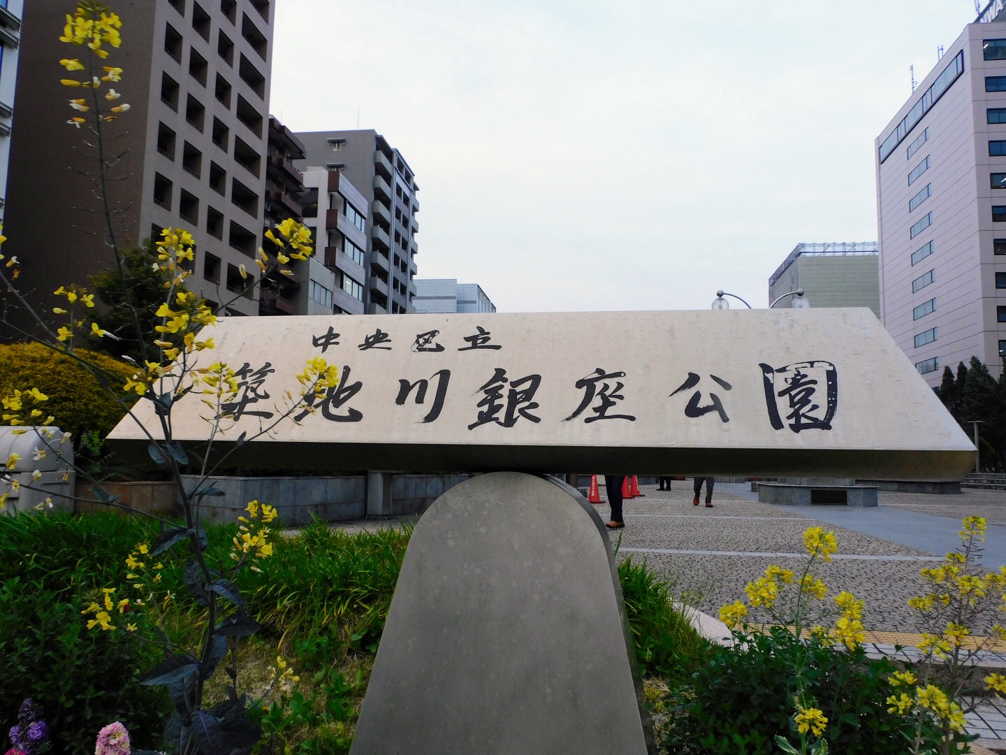 歌舞伎座の近く 築地川銀座公園で今 咲いてると