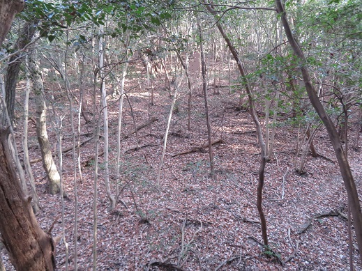 落ち葉はいっぱいですが、ほとんど水平で歩きやすい