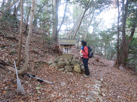 しめ縄と御鏡餅の飾られた小さな祠におまいりして