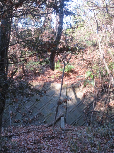 帰路に、以前はよじ登った擁壁を見て