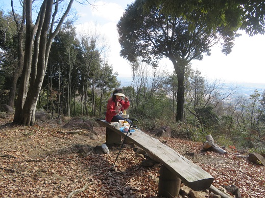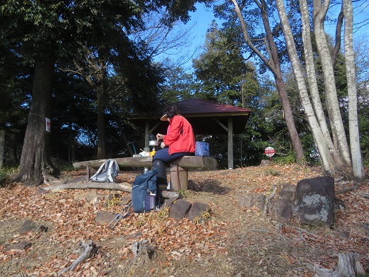 あずまやの前の温かいところでお昼ご飯にしましょう。
