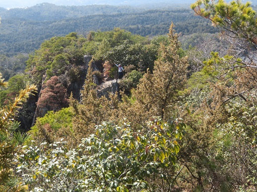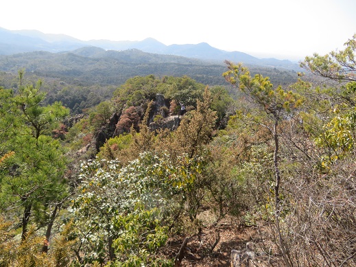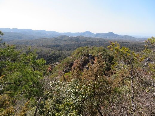 山頂の少し先に行くと、尾根の続きに岩の露出帯が見え