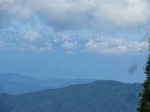 山頂でのんびりしていたら、北アルプスの方の雲が少し切れて