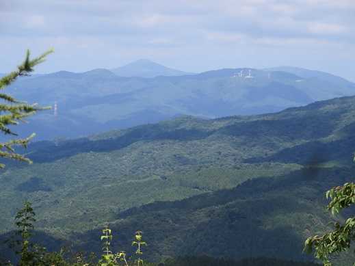 ズームにすると、一番奥の三角錐の茶臼山と、