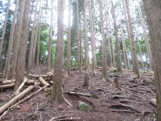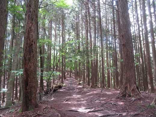 植林の中ですが、間引きもされているので、明るく歩きやすい