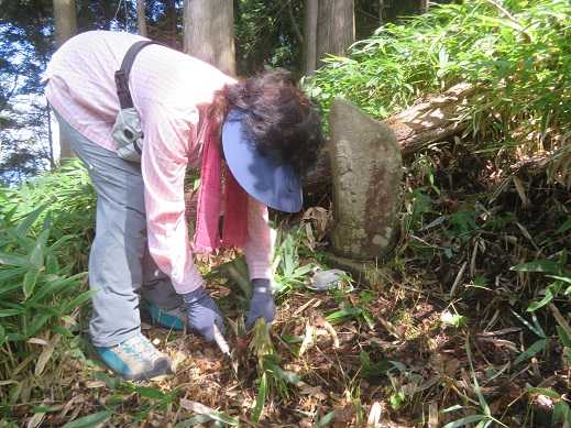 今度来たら笹刈りしようと、鋏と鎌を持ってきました。