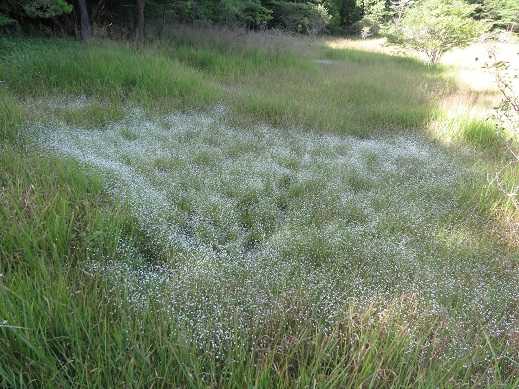 イワショウブの後ろにはシラタマホシクサが白く輝いています。