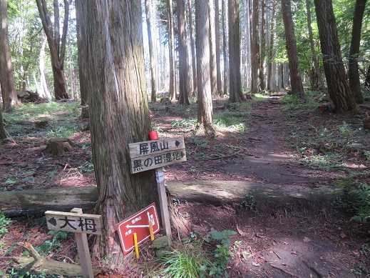 寿老の滝は左へ、田代山へはまっすぐ進みます。