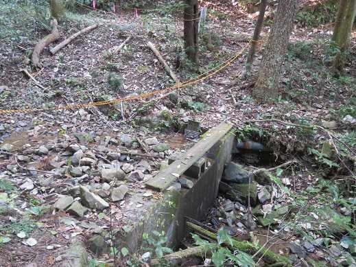 板は苔むして滑りそうなので、沢の石を渡ります。