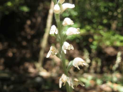 31日(日)メチャクチャ暑かった8月も今日が最後の日です。しかしまだこのブログを書いている9月でも暑い日が続いています。各地の気象台始まって以来の暑さを更新し続けています。瀬戸の岩巣山へミヤマウズラを見るために行ってきましたがこの暑い時にわざわざ低山は暑いだけなので本当は登りたくありません。絶滅危惧種では無いけれど、なかなか珍しい花に惹かれて登りました。ミヤマウズラ(ラン科 シュシュラン属)どなたかのブログで、「この地域ではミヤマウズラは絶滅危惧種ではないからわざわざ あえて場所を特定して載せます」、と書いておられたけれど一昨年、昨年と順調に生育していたのが今年は群生の真ん中がごっそり盗掘されています。親切に場所を特定したからなのか、そんなことをしなくても悪い人はどこにでもいるから仕方がないのでしょうか。でも私はあえて場所を特定しません。本当に山の花好きな人が、探して見ればいいと思うのです。あまり興味の無い人や、エゴの人に知らしめることはないと思うのです。せっかく順調に生育していた株を、心無い不心得者が採っていったのでしょう。山野草はその花に適したその場所でしか咲かないから、自分の庭で自分だけのものとして咲かそうとしても咲いてくれないと思います。今年は2月に岩屋堂から登っています。今回は白岩の里の登山口から登ります。用意をしていると、すでに一台停まっていた車の登山者が下りてきてミヤマウズラの話になって、盗掘されていると聞いてガッカリしながら登ります。小堰堤何度も登っているので登山口で写真を撮るのを忘れて歩き出し小堰堤でスタートの写真を撮りました。次は大堰堤大堰堤の左の階段を登って高巻きします。樹林の中だからまだましですが名古屋は今日は40度越えるとか・・・木の下でも暑い暑い。登山道は東海自然歩道なのでところどころにベンチここでお茶を飲んで一休み最後の登りこの急登を登り切ったら目印の大きな木があってその木の横でランチを食べたことを思い出します。写真の右奥にその木が見えてきました。右の大きな木が私たちの目印の木です。この木から先は稜線歩きです。稜線までは川沿いを歩くので風が吹くところでは、「ああ~風が気持ちい」となるのに稜線歩きでは、日当たりの良いところではジリジリと焼けそうになります。岩巣山山頂への分岐いつもここで、岩巣山の山頂をながめて岩巣山山頂(481m)今回で14回目です。岐阜の山歩きの会の方達があまり広くない山頂の片隅でランチしています。山頂から少し南東側に開けた岩場元岩巣のピークが見えています。山頂にある温度計は34度爽やかな風の吹く山頂はこの温度です。下界ではやはり40度になっているでしょうね元岩巣への最後の登りここは鈴鹿と同じザレザレの白い砂山です。元岩巣のピーク三国山アンテナ群が特徴で、山頂まで車で行けるのですがもうだいぶん長い間行ってません。元岩巣のピークここに以前、去年の夏は峠の会が作られた山頂標識があったのに抜かれて有りません。他に小さな標識もあったけれど、すべて取られています。山頂にも峠の会が作られた山頂標識がありましたが、抜かれています。誰が抜いたり、外したりすりのでしょうか・・・標識ぐらいあってもいいのにと思います。ゴミを残したり、展望のためと言って木を切ったりするのはいけないけれど標識位は有っても良いのではないでしょうか。私はピークで記念の証拠写真を撮って帰る人なのでそう思います。小さな5mm位の花が15~20個茎について下から順番に咲いています。去年の私のブログの写真と比べて、群生の真ん中が30センチほどすっかりありません。倒れているのも有り、雨も最近降ってないのでかわいそう。頑張れ~と祈るしかありません。山の花はそこでしか生育できないのでそっとそこで咲いているのを見るだけ、写真を撮るだけにしておきたいものです。今回は色々と考えさせられる山行きでした。