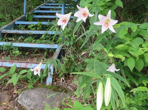天狗棚展望台のササユリ29日(日)愛知県津具村の丸山へ19年ぶりに登ってきました。十年ひと昔というから、ふた昔ぶりの山です。丸い形から名付けられたという丸山は2000年に初めて登り、2006年に2回目に登って以来ご無沙汰していました。以前の山頂はカヤトの広場でしたが、今回驚いたことにカヤトは消えて、雑木がぎっしり繁茂して展望は全くなく以前の面影が全くありませんでした。比較するためにリンクを貼り付けておきます。丸山2006年4月道の駅つぐ高原グリーンパークの横から林道丸山線に入って舗装が途絶える手前の広くなった路肩から登ります。一本の木に丸山登山口と書かれた木の札が掛かっています。以前はもっと手作り感のある可愛い標識がありましたが、無くなっています。字が薄くなっていてわかりにくいので持っていたマジックインキでなぞって濃くしました。植林の中をまっすぐ登って行きます。植林が終わって、自然林になったら急登が始まります。水平なところが無いくらい、すごい急登が続きます。両手を使って、木の根を掴むところもあり帰りの心配をしながら登っていきます。背の低い笹藪が出てきたら、少し斜度がゆるやかになって写真も写せます。しかし、展望も無くひたすら登るだけなので、登る途中の記憶が無いのが理解できます。オブジェのようなアカマツが出てきたらほとんど水平になり山頂が近い。私はすっかり記憶が無く、まるで初めての山のようです。そして森の入口のようなところが丸山山頂(1161m)私の唯一の記憶はここはカヤトの広場でしたが今は全くカヤトは有りません。茶臼山と萩太郎山も見えていましたが今は木がいっぱい成長して、どこからも木の間から見える景色は有りません。古町高山にあった山頂標識に字体が似ています。とても上手な字ですね。三等三角点(点名丸山2)(ということは点名丸山1があるのでしょうか・・・)山頂から少し進んでみたけど、森が広がっていて展望はありません。以前の背の低い木が19年の間に成長したのでしょう。所要時間も40分ほどで登れるのでお昼ごはんを持たずお茶だけ持って登ったので写真を撮ったらさっさと下山です。しかしこの下りは、斜度がきつくてメチャクチャ緊張しました。いったん滑って転んだら、途中で木にぶつかって止まらないかぎりかなり下までそのまま落ちてしまうだろうと思ったら、慎重に慎重に・・・登るのと同じくらい時間をかけて下りてきました。お昼ごはんは道の駅つぐ高原グリーンパークの片隅で頂いて次の山、天狗棚に向かうために面の木園地を目指します。面の木園地は、以前のコンクリート造りのトイレと休憩場が数年前に撤去され何もなくなって駐車場だけ残っています。登山口の大きなヤマボウシは丁度満開です。芝生広場の向うの井山の風車は今日は全く回っていません。今は無風なのですね。低い雲が空を覆って、傘とレインウェアとお茶だけを持って登ります。登山口の登山者数の記録のためのカウンターを押してスタート気持ちの良いブナ林を登って行きます。バイケイソウがちょうど咲き始めたばかり登山道は階段が整備されていますが朽ちかけて歩きにくいブナ林の新緑は爽やかで好きです。ここは標高が高く寒いので、今が新緑です、ベンチがある分岐ここで右側の山腹を巻くルートで、天狗棚展望台へ先に行きましょう。山腹を巻いて行く緩やかに登って行く(これは振り返って写したもの)天狗棚山頂からの道と合流帰りはこちらの方へ直進して天狗棚山頂へ向かいます。いつも思うのですが、新興宗教の石碑でしょうか・・・石碑のすぐ下の鉄階段を下りたら祠とササユリ以前よりササユリは増えていてうれしい展望台と言っても、尾根上の広場です。右の木の間から、遠く「三ツ瀬明神山」が見えています。真正面はこの間登った、「白鳥山」と集落を挟んで「大峠」真正面のヤマボウシの向こうは「萩太郎山」そして、先ほど登ったまん丸の「丸山」「丸山」の右の「茶臼山」(木の向こうで分かりにくい)真正面のヤマボウシの横には鉄階段この鉄階段は東側の登山口駐車場から登るルートで、急斜面に付けられて長いのでKIKIはあまり好きじゃなくて最近はここから登っていません。次は尾根道を天狗棚山頂へ向かいます。分岐を過ぎて、岩の露出帯を登って行きます。しばらく岩の露出帯を歩きます。ブナの原生林虫がまとわりつくのでネットを被っています。左は車を停めた面の木園地のルートへの合流点天狗棚山頂(1240m)ブナの原生林しか、他に何にもない山頂です。三角点はこの先の「1200高地」にあるのでここには標識しか無く、標識が無ければ通り過ぎてしまいそうです。今日はここで戻ります。下山は先ほどの合流点まで戻って下ります。登りに見たバイケイソウをもう一度写して、今日の花はバイケイソウです、名古屋は今日も暑かったようですがこの茶臼山近くの面の木園地や津具高原は標高が高くて爽やかでした。木陰を歩いていると下