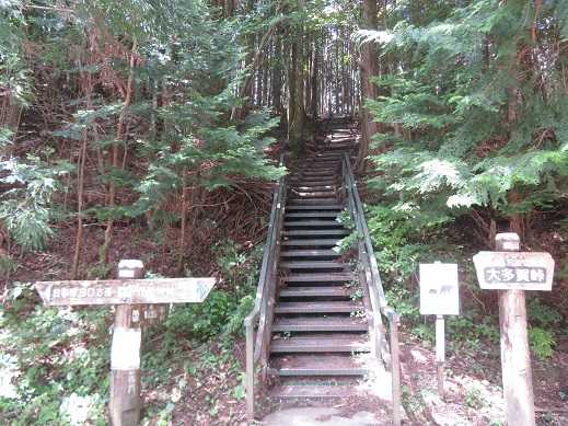 8日(土)今まで何度も、好きな中山道の馬籠宿から妻籠宿まで歩きました。今回は同じ中山道でも大湫宿と本陣山を歩きます。たまたま国道19号線近くを地図で眺めていたら大湫宿を見つけたのです。中山道大好きなKIKI はさっそく飛びつきました。そして本陣の北裏の本陣山は、登山の山でもあるのでセットで楽しめるではありませんか!! 旧中山道の大湫宿は江戸の日本橋から京都の三条大橋までの69宿(532Km)の内岐阜県(美濃の国)を通る17宿のうちの一つで江戸から47番目の宿場です。我らの車は、国道19号線から県道65号線を北へ、途中から一車線の細い急斜面をグングン登って行きます。モミジの大木の並木が右側の川沿いに続いています。そして突然開けたのどかな景色は大湫宿です。本陣跡の駐車場に向かいます。斜め向かいには丸森(森川邸 今は観光案内所になっています)ここで案内図のチラシを頂いて登山開始向かいは大湫コミュニティセンター静かな大湫宿です。大湫小学校跡のグランドの横から山に入っていきます。以前はグランドの一段高いところには校舎が建っていました。登山口登山道は少し荒れていて、最初から急斜面です。ところどころ標識があるので安心して歩けます。ホウノ木の葉っぱがいっぱい落ちています。向うに看板が有り氷餅池思ったよりも山の中にしては大きい池ここで作った氷餅を将軍家に献上していたそうです。あと少しで本陣山の山頂本陣山山頂(633m)二等三角点(点名 大湫)植林に囲まれて展望は有りません。証拠写真だけ撮って進みます。植林が無ければこれほどの展望なのね進んでゆくと岩の上に祠が・・・保々家改石祠となっていますが、改石って何かしら?しかし、保々家は大湫村の開基なのね植林の中をほとんど平行にすすんで行くと鳥の根(東屋)とっくに12時を過ぎているので、ここでお昼ご飯を頂くつもりでしたが展望も無く日陰で暗いので、やめて進みます。少し下がったら腰かけ岩ですが、もっと大きい岩を想像していたのでなんだ~こんな岩だったの~と少しがっかり荒れた道を下って、笹藪に突入矢印の標識が有るからいいけど、なければ少しためらいますね。石畳の道に出て、琵琶峠に向かいます。とても立派な石畳で、熊野古道の石畳より石が大きく坂道を緩やかに段差をつけているのでとても歩きやすい。広くなったところにベンチと標柱ここに琵琶峠と標柱が有るのでてっきりここが琵琶峠かと思いました。八瀬沢の一里塚までまだまだ緩やかに登ります。石畳は坂になっていないので、滑りにくく歩きやすい。石畳の坂道は苔がついていると雨の後は濡れてずべりやすいので坂になっているとさらに滑りやすい。写真で凸凹になっているように見えますが、少しずつ石の高さで段差をつけてくれています。熊野古道の石畳は坂になっているので下りは怖かったのです。一部狭いところもありますが、比較的広い石畳です。標高585mの高所にあり、全長730mの国内最長級の石畳です。ここで文学碑と見晴らし台という表示に惹かれて脇にそれて登ります。文学碑その向こうに新しいあずまやがあり、水晶山とその奥に屛風山系の山々が見えています。ここで遅いランチです。暖かい風の無いところでゆっくりお昼ご飯を頂いて再出発。道を下って行くと丸い土饅頭のようなものが二つ並んでいます。八瀬沢一里塚です。来た道を振り返って、植林の中の明るい鞍部がどうやら琵琶峠です。我らは文学碑とあずまやに行ったために琵琶峠を迂回してしまったようです。戻り道はちゃんと琵琶峠経由で戻ります。馬頭観音と皇女和宮様の和歌が記されています。皇女様がここを通った時に、以前はもっと見晴らしがよかったので遠くに見える伊勢湾を、琵琶湖だと思って京都を思い出して和歌を詠んだそうです。それと、もう一つ琵琶峠の名前にまつわる話は京に琵琶師の修行に行った青年が、修行途中であきらめて実家に帰ろうとしてここまで来て休憩していたら風に揺れる木々の音が素晴らしく木でさえ素晴らしい音を奏でるのに、自分は途中で諦めようとしていると反省して京に戻って念願の琵琶師になれた、という逸話があるそうです。琵琶峠東上り口ここにも馬頭観音がまつられています。風情のある峠への東入口ここからは舗装道路を大湫宿に向かって歩きます道路の横に休憩場、ここから安藤広重が大湫宿を描いた場所です。当時は坂道で、今も緩やかな坂道ですが、車だと坂道の感覚が少なくあっという間に過ぎてしまいます。ここにも馬頭観音様石橋の欄干ですが一つしかないね・・・グルリと周りを見渡せば、道路の反対側に片方の欄干の石が有りました。宿場の入口の看板美濃の国の17宿の名前が書かれています。大湫宿は海抜510mの高地で美濃の国で最も高所にあり急坂が続く難所でもありました。宿場の入口には高札場幕府からのお知らせを掲示するところキリシタン や バテレンと書いてます。大湫宿の碑観音堂綺麗な天上絵 しかし、ガラス越しなので