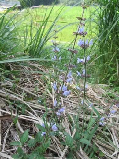 3日(日)連日茹だるような酷暑の中を、車を走らせて涼しいところを求めた結果長野県阿智村の蛇峠山と高嶺に登ってきました。しかし涼しいかと思ったのに途中で出会った登山者が、登山口では29度だったということでどおりで暑くて暑くて登り始めからフラフラでした。蛇峠山は初めて登ったのが2000年10月それからしばらくは登らず2回目は2019年、今回で5回目です。しかし今回はすごくたくさんの人と出会って年々登る人が増えている山です。馬の背にある電子基準点大船山と巨大風車今日は雲が多くて展望は期待できません。馬の背から蛇峠山の山頂にある鉄塔の先が見えています。木陰だから涼しいと思いきやメチャクチャ暑くてフラフラです。頭まで痛くなって、たぶん軽い熱中症です。しばらく休んでいましたが、あまり良くならずフラフラで歩きます。ウツボグサはきれいに写せました。のろし場の手前の電波施設に近いところは舗装道路を歩くのですが、その照り返しの暑いこと!!雲の間に見える青空の憎い青さ。レーダー雨量計施設御在所岳の山頂にもあるそうです。のろし場武田信玄ののろし場向うの鉄塔は山頂手前にある鉄塔です。以前はその横でランチしましたが、虫が多くて閉口しました。蛇峠山の山頂(1664m)二等三角点があります。展望台は登ってみても、周りの木が高くなって何にも見えないので今回はパス。のろし場の奥にはヘリポートと南アルプスの展望地がありますが今日は雲が多くて何にも見えません。下山途中で見つけた花は初めて見た花です。ミズチドリラン科 ツレサギソウ属私がヘロヘロで登山を楽しむことが出来なくて高嶺ならほぼ平行移動なのでのんびりならば歩けるだろうということで高嶺に移動します。以前は林道が崩壊で通れなかったのですが修復されて通れます。長者ヶ峰の駐車場に車を停めて、暖かい飲み物を作ってのんびりして展望を楽しもうと思いましたが、雲が湧いていて午前より天気が悪くなっています。駐車場には無線愛好家の車が3台停まっていてすごく大きな高いアンテナもいっぱい立てて、発動機を動かしてすこし山頂の雰囲気が壊れて残念です。最近はどこの山もハムをやっている人の車が増えている気がします。向うのアンテナのいっぱいある山が先ほどの蛇峠山です。大船山と風の森の風車高嶺に向かって林道を歩くと、大船山と風の森の風車が、蛇峠山から見たよりもっと近くに見えます。どんどん天気が悪くなっているような気がします。奥に高嶺が見えてきましたがもう空は低い雲が垂れこめています。目の前のピークが高嶺(1599m)最後の登りは笹の中の藪漕ぎで先ほど下山中、遠くに雷が鳴り雨がパラパラしていましたがその雨で濡れた笹でズボンがぐっしょりです。高嶺山頂(1599m)ゆっくりしたいところですが展望が無く仕方が無いので下山しましよう。少し西の方に歩いたら大川入山の方が少し雲が切れて見えました。しかしこの後車まで戻る途中、虫につきまとわれネットを被りさらに雨が降ってきて、車まであと少しのところでバケツをひっくり返したような土砂降りになって下着までびっしょり濡れて、今日に限って着替えを忘れたため車のエアコンが寒くて震えながら帰宅しました。今日は暑くて軽い熱中症のような状態になったかと思えば土砂降りに合って濡れて寒くて震えたりで大変な日でした。