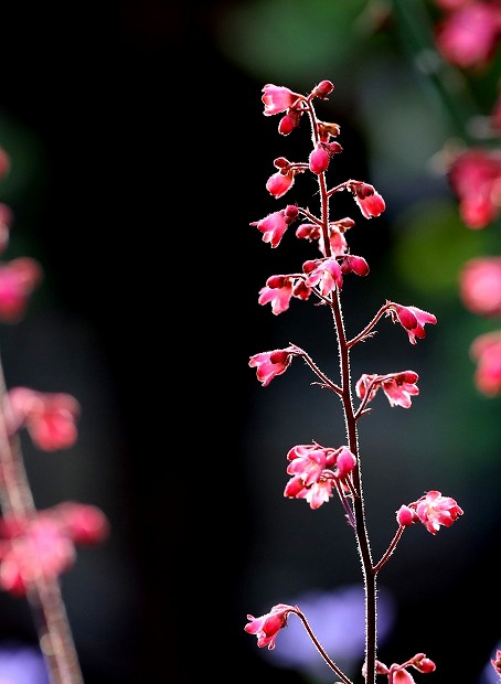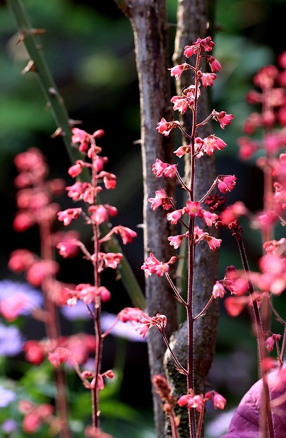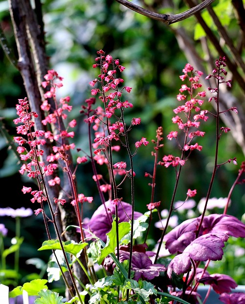 ルビーのような色で咲いているヒューケラ(ツボサンゴ)、レーブオン
