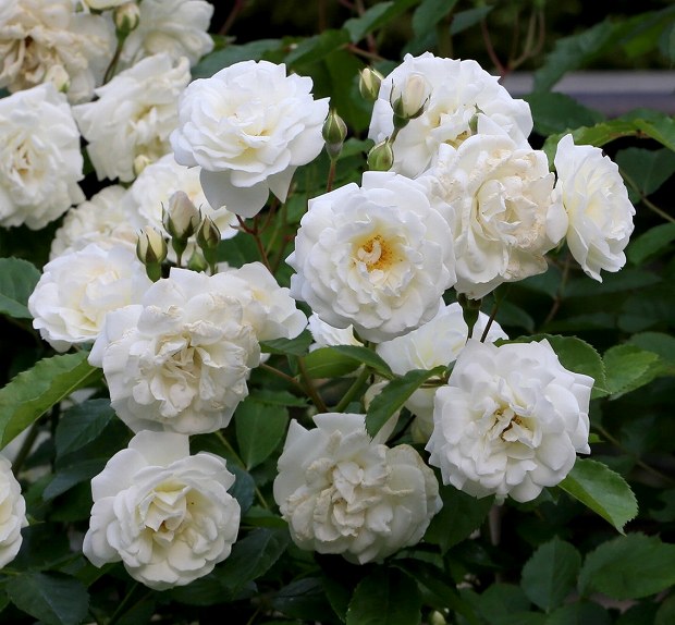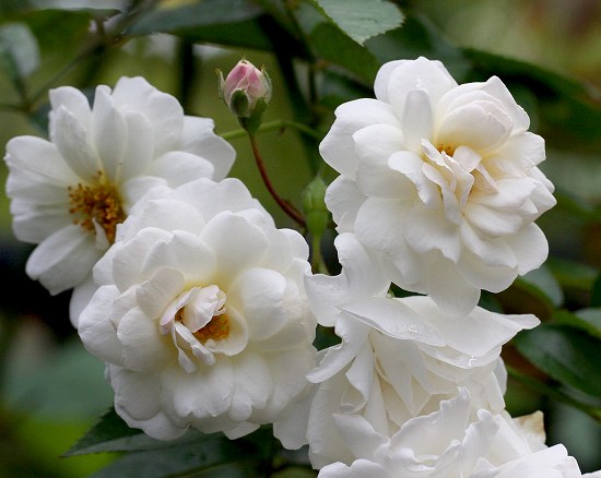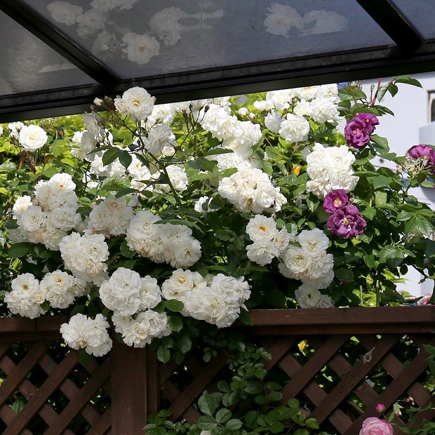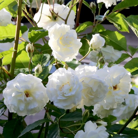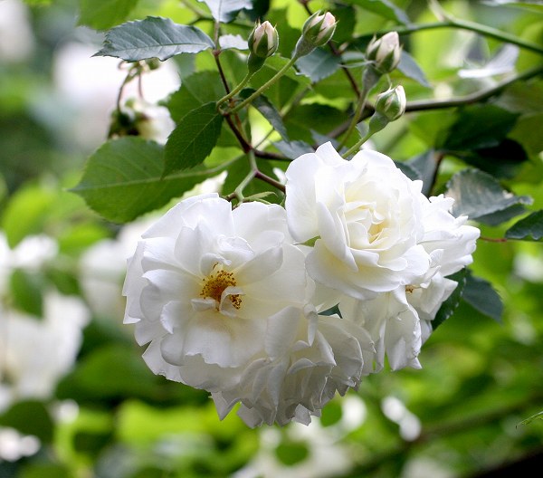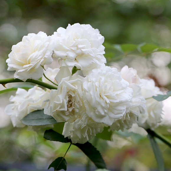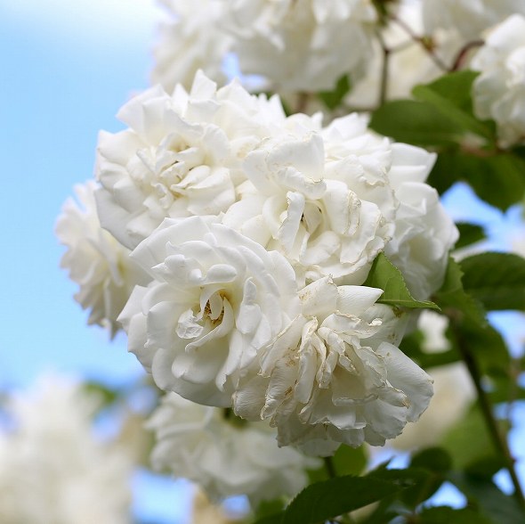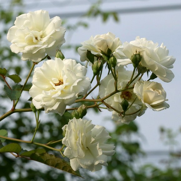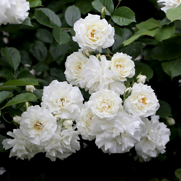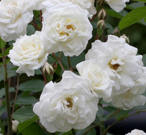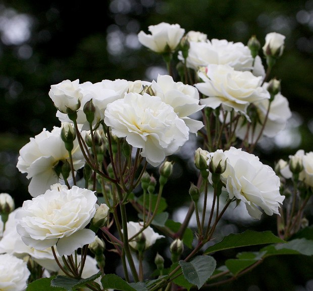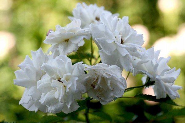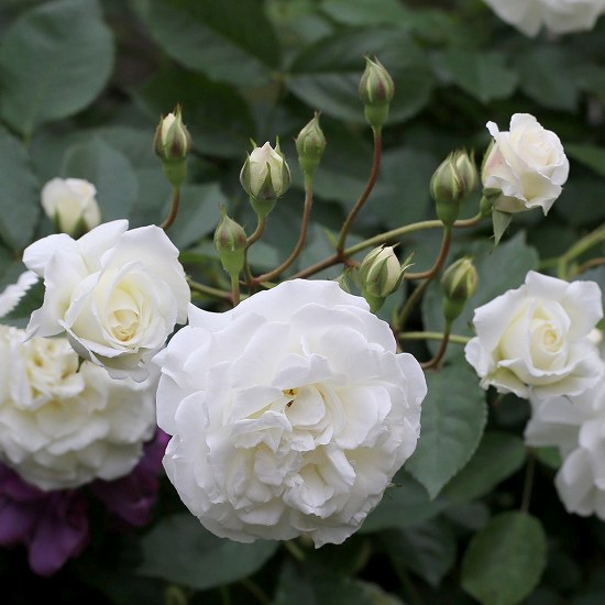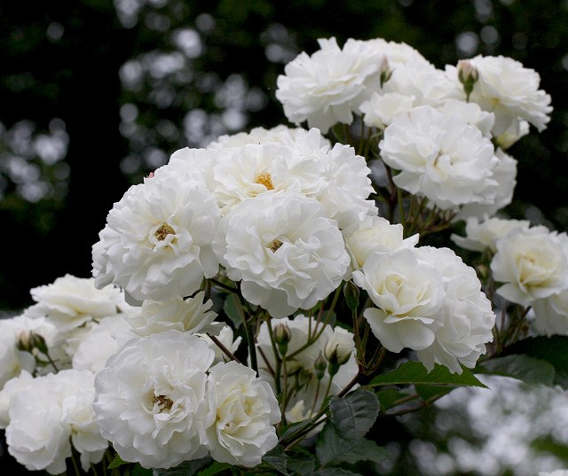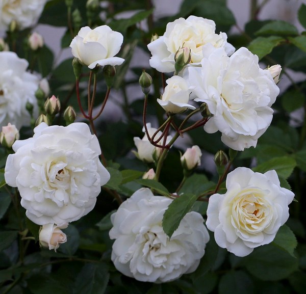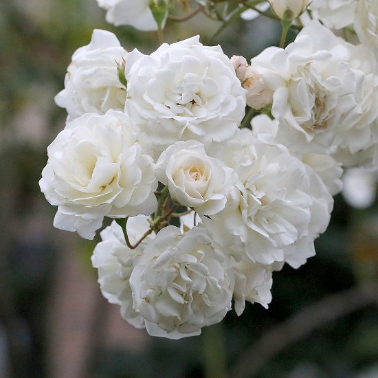 四季咲き、房咲きで真っ白い素敵な薔薇、プロスペリティ