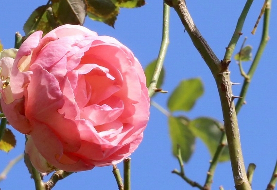 (2022年5月17日撮影)2022年の薔薇をふりかえって・・・今日ご紹介するのは長い名前の蔓薔薇、コンラッド・フェルディナンド・マイヤー、グロワール・ド・ディジョンとロサ・ルゴサ・ハイブリットを親に1899年作出。葉っぱもハマナス系の小ぶりで、野生味を引き継いでいます。(2022年5月21日撮影)野性味が強く、ともかく元気で玄関前に地植えしていますがトゲトゲの太い幹をグングン伸ばし大振りのピンクの花も見応えがあります。ハイシーズンは、沢山の花を付けてくれ四季咲き性もあって、他のシーズンもボチボチ咲く、優れもの。(2022年5月21日撮影)ご覧のように沢山咲くのですが幹のトゲトゲ具合は、我が家で一番!トゲトゲ女王と呼んでいます。特に誘引の時は、どこを持ったらよいのか?判らないほど、びっしり。それでも、見応えのあるこの姿に来春も会いたくて、寒肥もたっぷりあげなくちゃと思っています。にほんブログ村ご訪問有難うございます。お手数ですがクリックよろしくお願いします。