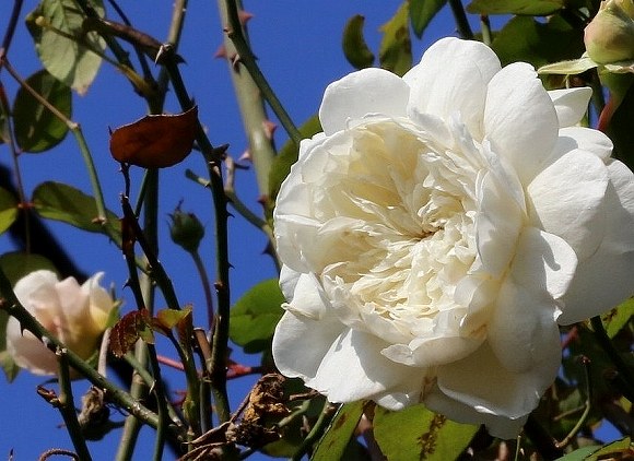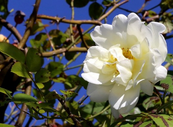 (2022年12月3日撮影)ハイブリットムスクの半つる薔薇、プロスペリティ我が家に2株あったマルメゾンの一株とトレードしてカーポート脇に地植えして、だいぶ経ちます (^▽^)(2022年12月3日撮影)バラ、プロスペリティは四季咲き性もあって、こうしてクリスマス近くの今、真っ白い花を咲かせて聖夜を迎える時期にふさわしい雰囲気を醸し出しています。(2022年12月3日撮影)マッス(かたまり)に咲く姿は通年同じですが、春は、蕾や咲き始め、そして満開と咲き具合が異なってのマッス。寒くなるにつれ、花もちがよくなるのでご覧のように、満開の花が固まって長く咲き、スーパーホワイトのまばゆい白さが冬空の下で輝いています。にほんブログ村ご訪問有難うございます。お手数ですがクリックよろしくお願いします。